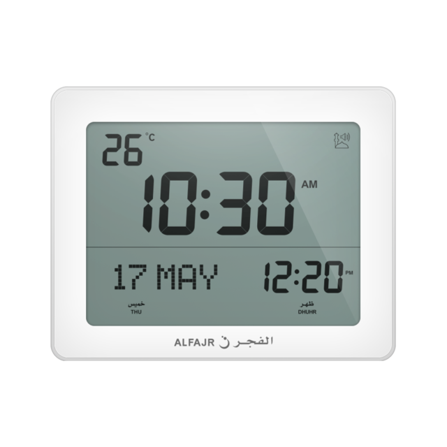 The ALFAJR CF-19 is a digital Azan wall clock, designed to offer accurate prayer time alerts for cities worldwide. It's a perfect addition to your office, classroom, bedroom, or any room at home.