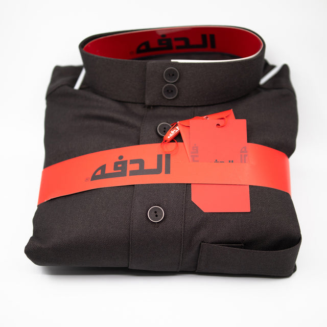 This formal men's thobe comes in multiple colours, is woven from the finest fabrics, and boasts a luxurious and elegant look. It is one of the most distinctive Daffah products, offering comfort and suitability for daily use and all occasions. The high neck and elegant sleeves without Cuff style.