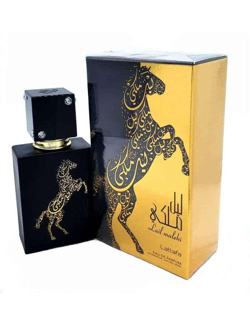 Perfume Lail Maleki Eau de Parfum by Lattafa Perfumes is an intense oriental perfume with floral and woody notes. The top note begins with an impressive and powerful attack of warm, fruity notes, spices and citrus. A deep and full heart note follows with floral scents of jasmine, gardenia, orchids and delicious honey. The base concludes this wonderfully perfume with sandalwood, amber, musk and caramel. An irresistible oriental perfume that is generous with its charms and very suitable for the evening or festive occasions." - a note from the brand.