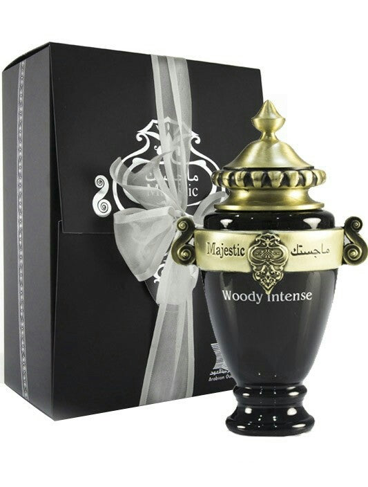 Majestic Woody Intense by Arabian Oud, Following the magnificent success of the sublime perfume; Majestic - a global award winner. Majestic Woody was released with the same luxury and sublime package with a unique formula combining extracts of sandal mixed with extreme care with Davana wood for more concentration and vividness to eventually settle on Black incense fragrance for a perfume worthy of its buyers to make it special and attractive all the time.