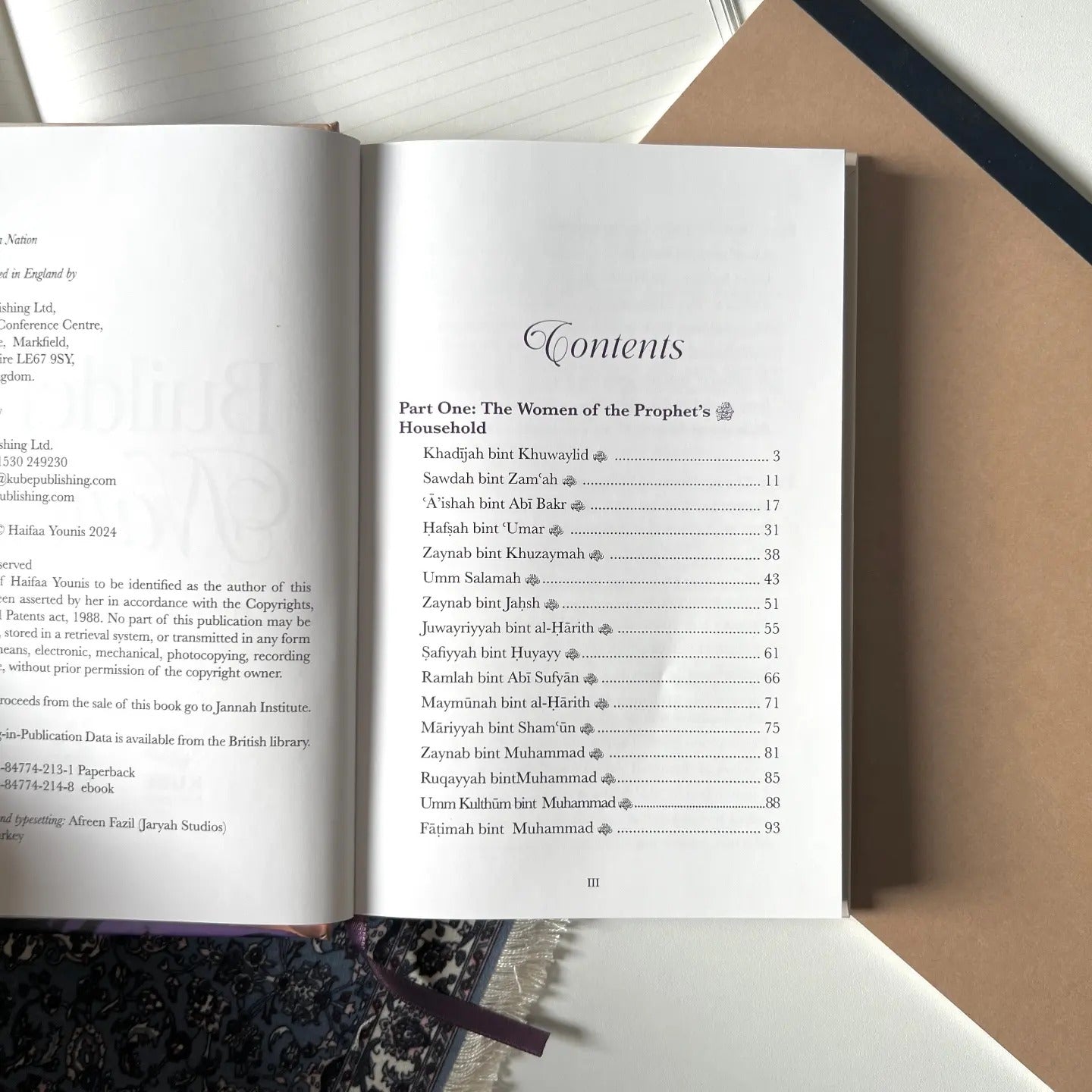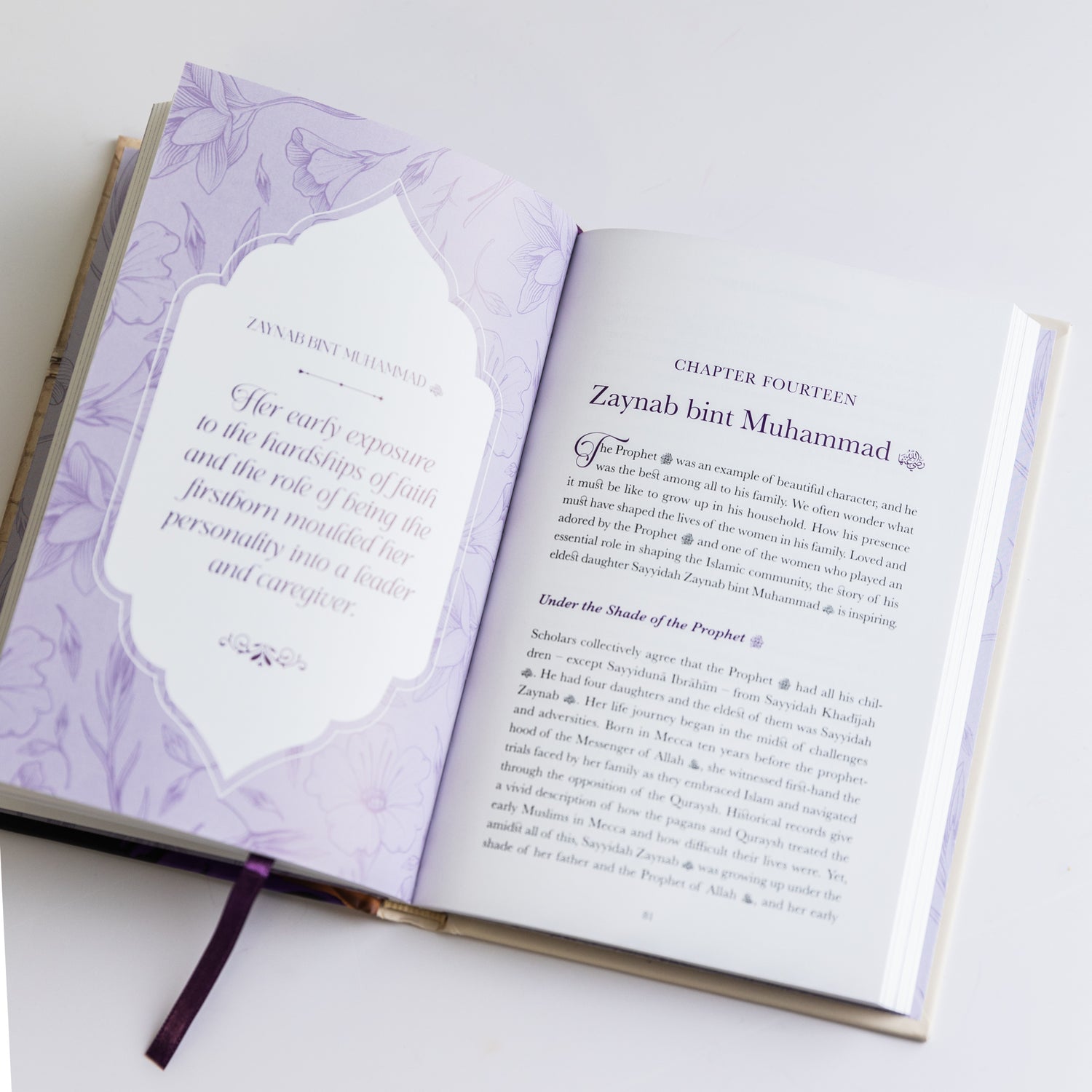 The book is divided into three main sections. The first section focuses on the key figures in the Prophet Muhammad's ﷺ household - his wives and daughters. The second section highlights the female Companions who actively participated in constructing a new nation, each contributing their unique qualities and characteristics to shape Islamic society. The final section features a selection of Muslim women throughout history, each extraordinary in their own right, harnessing distinct gifts bestowed upon them by Allah to build this Ummah.