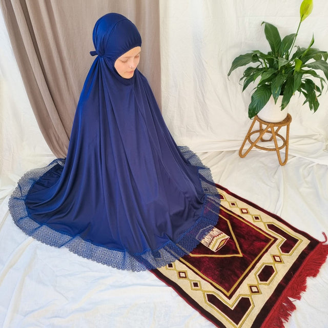Elegant Prayer Clothes for Women with Lace - Navy Blue