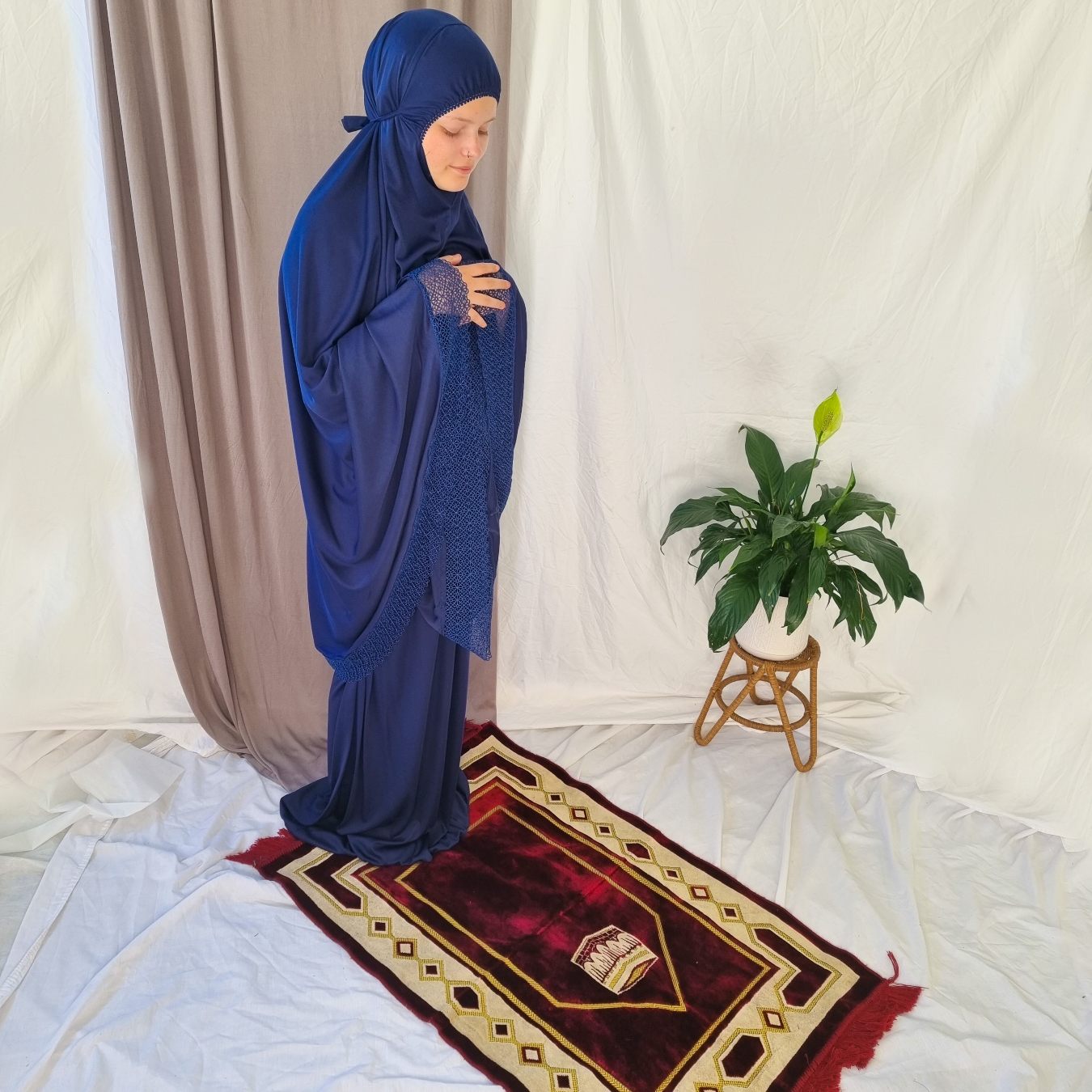 Elegant Prayer Clothes for Women with Lace - Navy Blue - Navy Blue is backordered and will ship as soon as it is back in stock.