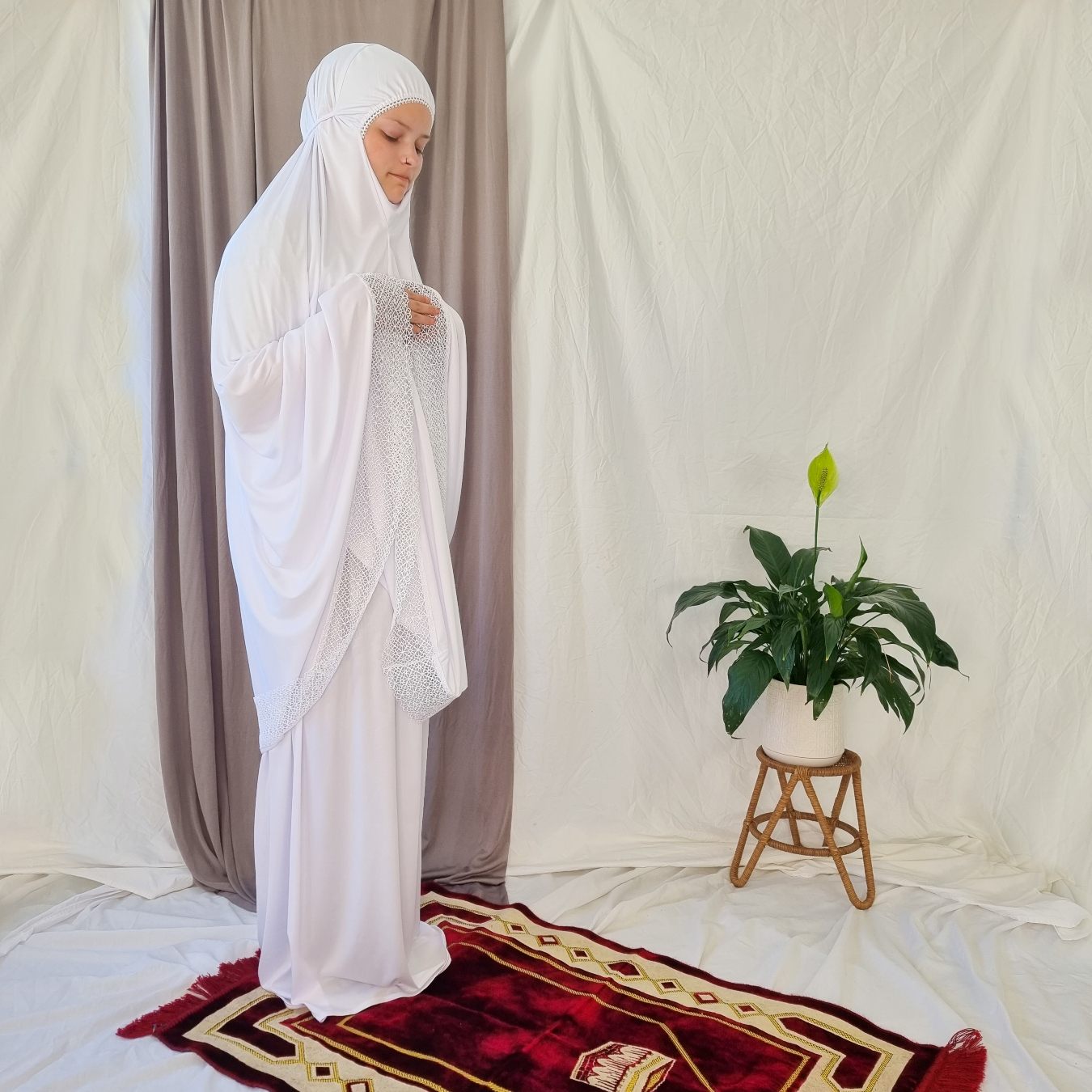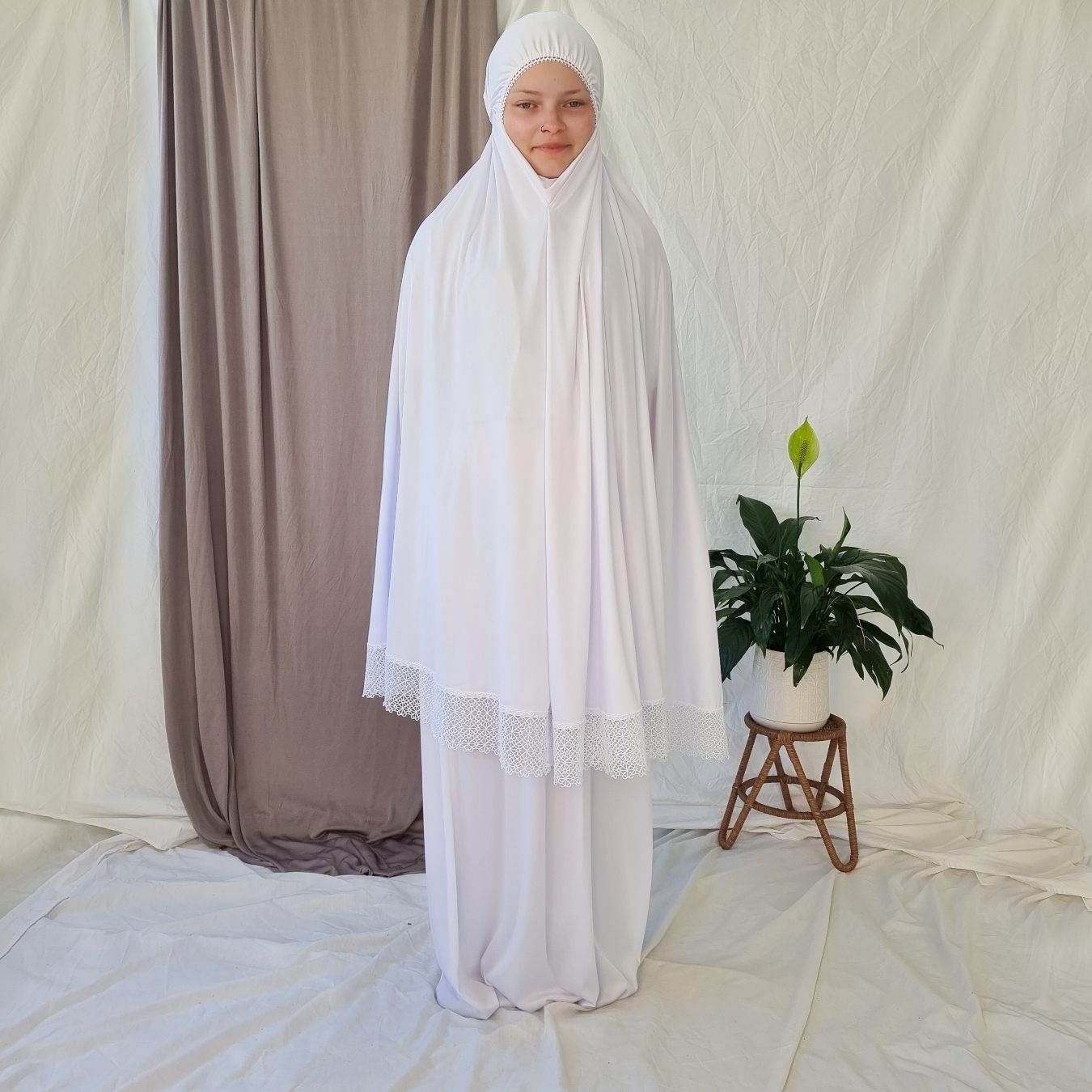 Elegant Prayer Clothes for Women with Lace - White