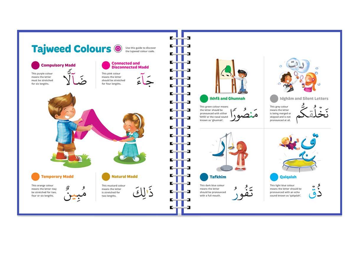 - This book includes incorporates the same Tajweed colour codes used in the world-famous Madinah Uthmani Script Mushaf, making it easy for your child to recognise the tajweed rules accurately wherever they occur.