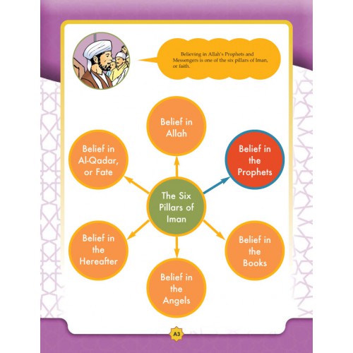 Each chapter includes the outlines, relevant Islamic vocabulary, succinct and objective material, and relevant stories. To make the material meaningful and action oriented, the themes of the book are supported by highlighted passages from the Qur’an and relevant Hadeeth of the Prophet. Additionally, the “Faith in Action” sections encourage students to put what they learn in every chapter into actions. Pictures, illustrations and brilliant layout design makes studying Islam an exciting endeavor for students of this age group. The review sections encourage students to consolidate their knowledge and to analyze and discuss concepts.