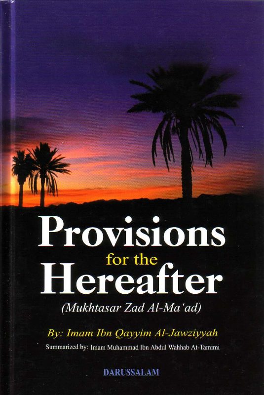 Provisions for the Hereafter (Zaad Al-Ma'ad) Allah has sent the Messenger (S) with guidance and the Religion of Truth. Strict adherence to the guidance of His Prophet (S) is required from the followers of Islam. The scholars of the Islamic community have attached great importance to it and produced texts regarding the Acts of Worship, Dealings and Habits in the light of the Divine guidance. This book is one of the most famous works written on this subject. This book is one of the important resources of knowledge for those who seek to know the Seerah of their Prophet (PBUH) as well as, the Fiqh learned from it. This is a book that is unique in that it explains the Sunnah through the Seerah and the Seerah through the Sunnah. It is a profound classic work containing thousands of pages written by Imam ibn al-Qayyim while on the hajj journey, Pilgrimage, from Damascus to Makkah. Despite its being written from memory, the several thousand incidents, hadiths, ayah, fiqh benefits, as well as, names of the companions associated with them, were remarkably close to the truth, with marginal errors. However, those who know the status, level of knowledge and Ta'hqiq that Imam ibn al -Qayyim had, will not be surprised to know the fact. Still, it is amazing how ibn al-Qayyim was able to write this volume while traveling to Hajj, especially since he was away from the resources of knowledge and enduring the hardships of travel. It is a blessing from Allah (swt) that is was possible for him to do so. Provisions for the Hereafter - Mukhtasar Zad Al-Maad (Zaad Al-Ma'ad) by Ibn Al-Qayyim (Qayim/Qayyem/Qayem/Qayum/Qayyum) Al-Jawziyyah (Jawziyah/Jauziah/Jauziyyah). Summarised by: Imam Muhammad Ibn 'Abdul Wahhab At-Tamimi