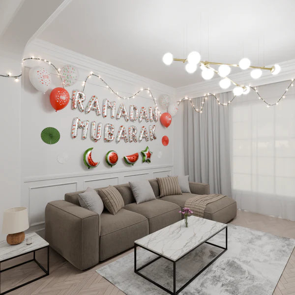 Add a festive touch to your Ramadan décor with these stunning Green Ramadan Mubarak Foil Balloon Letters featuring vibrant watermelon designs. Perfect for brightening up any celebration space and making your Ramadan extra special.