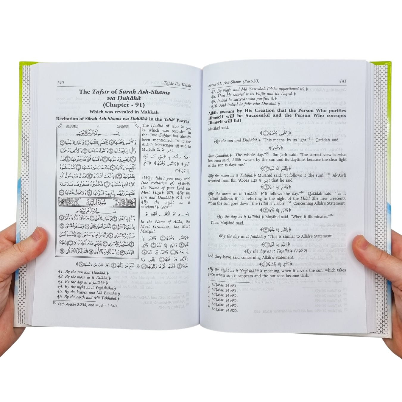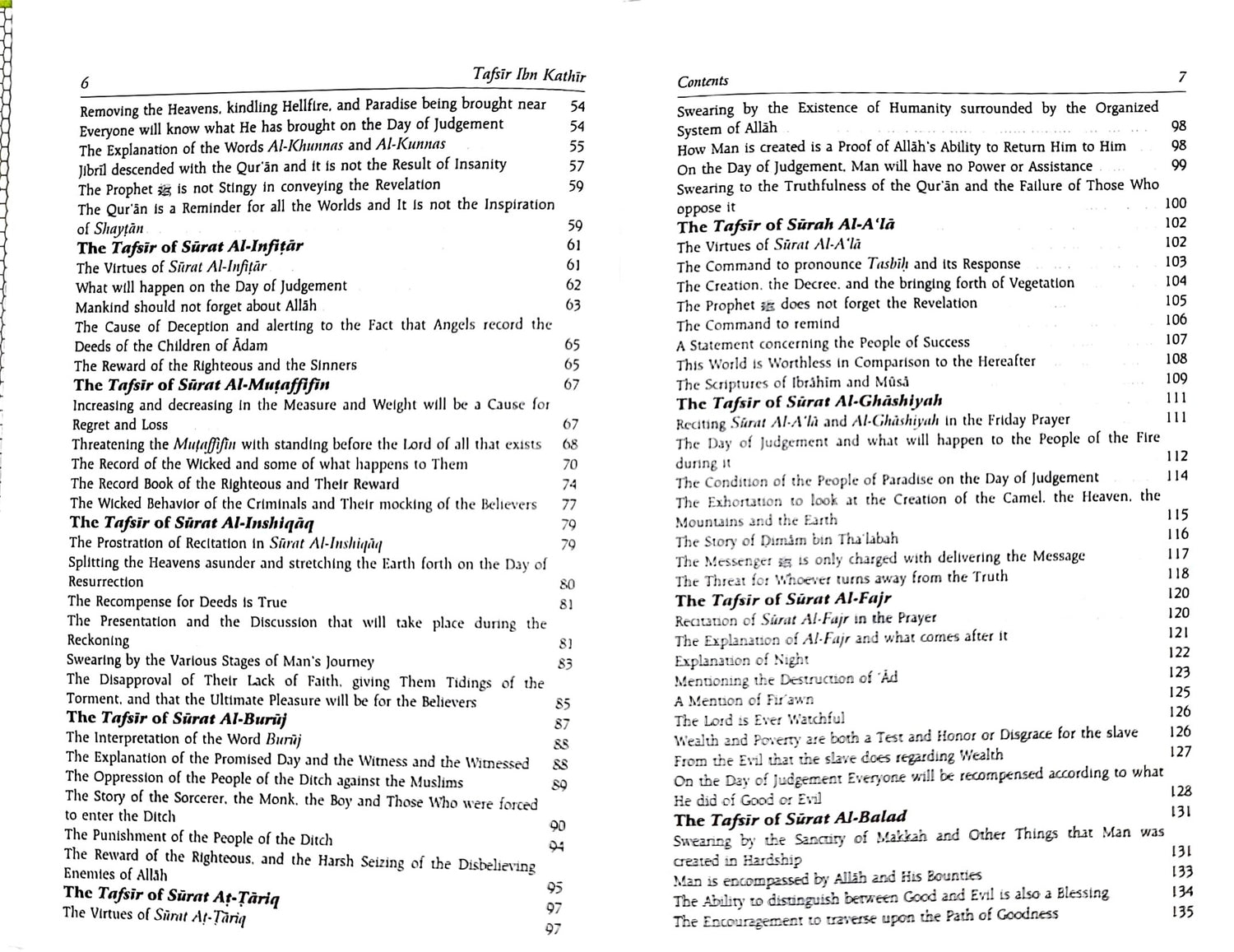 The 30th part of Tafsir Ibn Kathir is brief in form but comprehensive in interpretation. The meanings of the Qur’an have been interpreted by the Qur’an itself or by the traditions of the Prophet(S) and are enlightened with the thoughts and perception of the Salaf Saliheen; this is the cause that this renowned commentary is famous and favorite towards understanding the Noble Qur’an.
