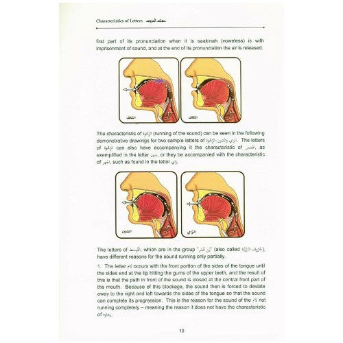 This book explains the concept of the accent (an-nabr) in the recitation of the Glorious Quran and the conditions of its use, it also defines and explains the important chapter on the characteristics of the letters, velarization and attenuation (tafkheem and tarqeeq) are covered in the part, as well as the concept of the two alike, the two similar, the two close, and the two far and the rules for idghaam terms is made in this book to assist the student in understanding the last chapter, that of the connecting hamzah(hamzah al-wasl).