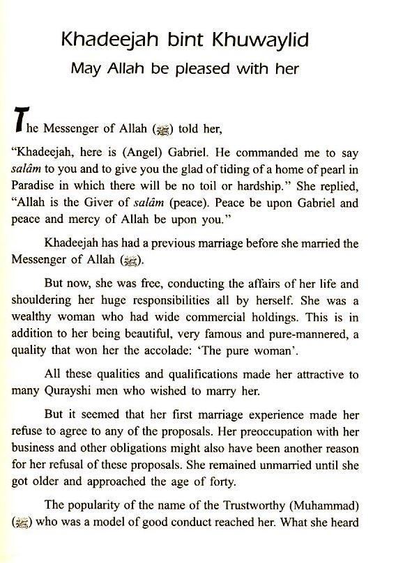 It is hoped that this book will not only strengthen the resolve of the already well-acquainted Muslims who follow the footsteps of their predecessors, it will also spur them into emulating the examples of those righteous, noble and pure women.