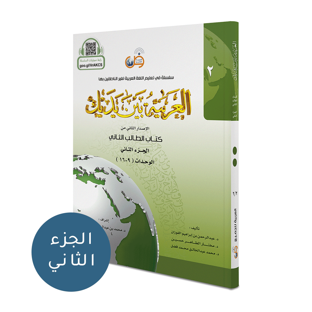 Arabic At Your Hands Series is developed for educational entities, including schools, institutes and universities. It begins from the basic level and continues with the students until they master the Arabic language, which enables them to join university and continue their Arabic studies in various majors. The second level consists of two parts (books), each of which includes 8 units (total of 16 units). Each unit consists of 13 lessons, constituting a total of 208 basic lessons in this level. The lessons of each unit are organized as follows: - Dialogue (1), exercises and vocabularies 2 pages - Sounds and exercises 1 page - Grammatical notes (1) 1 page - Speaking and listening (1) 1 page - Comprehension text and vocabularies (1) 2 pages - Grammatical notes (2) 2 pages - Dialogue (2), exercises and vocabularies 2 pages - Grammatical notes (3) 1 page - Speaking and listening (2) 1 page - Compare