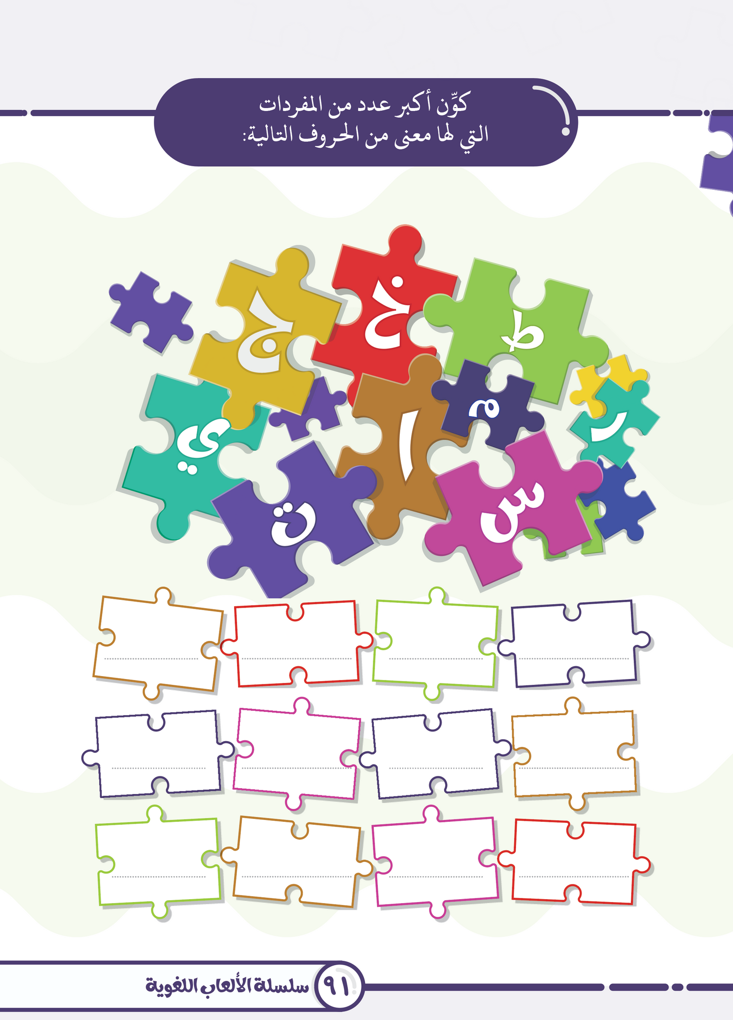 • يحوي كل جزء مئة لعبة لغوية تعالج كثيرا من مهارات اللغة.