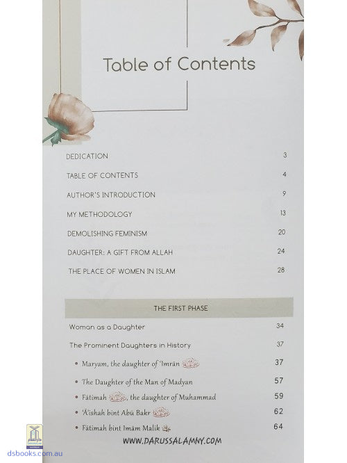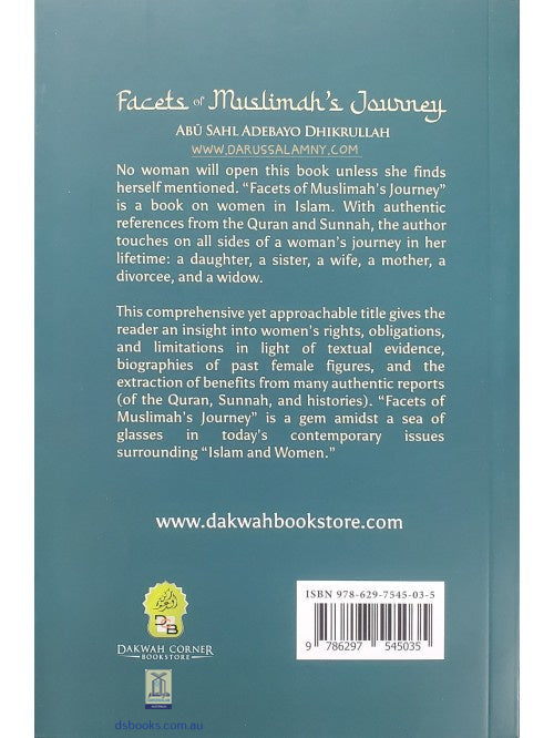 It is important to note that no woman will open this book unless she finds herself mentioned. "Facets of Muslimah's Journey" is a book about women in Islam. The author uses authentic references from the Quran and Sunnah to cover all aspects of a woman's journey throughout her life, including her roles as a daughter, sister, wife, mother, divorcee, and widow. Dsbooks©