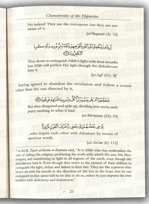 Hypocrisy is a deep rooted and all-pervading spiritual disease. A person’s heart could be overflowing with it yet be oblivious of it due to its hidden and subtle nature; frequently does it lead a person to think they are acting rightly when in reality he is spreading corruption