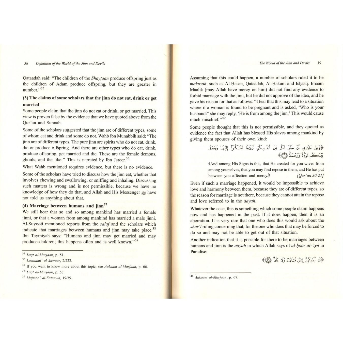 Some people think that writing about this topic is writing about a matter that should remain on the periphery of knowledge. They believe in going over this topic in the quickest of fashions and not giving it too much thought. They think that the benefits of such a study are very limited, and that being ignorant of this topic is not harmful at all. However, this is not an irrelevant matter. Humans today spend billions of dollars, with which they could develop countries and end poverty in the farthest reaches of the world, on research to discover whether there is any possibility of life on nearby planets. Scientists spend a great deal of their time and resources on this question. What about living beings that are known to exist right here with us on our earth? They live in our houses and they eat and drink with us. In fact, they affect our thoughts and our hearts and even drive us to destroy our own selves and to spill one another's blood. No price can be put on the importance of the texts of the Qur'an and authentic hadeeth that have reached us, giving us knowledge of this matter. Those texts uncover for us the secrets of these fellow-creatures: the world of the jinn