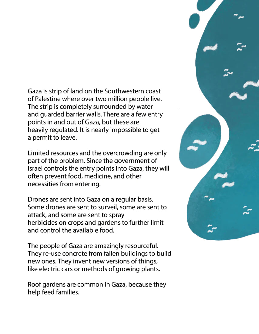 Noura is a strong young lady, diligently caring for her little brother, Esam, and for her father's rooftop garden. But life in Gaza is hard, even for the young. Can Noura keep working with all her heart, even after losing the thing she loves the most?