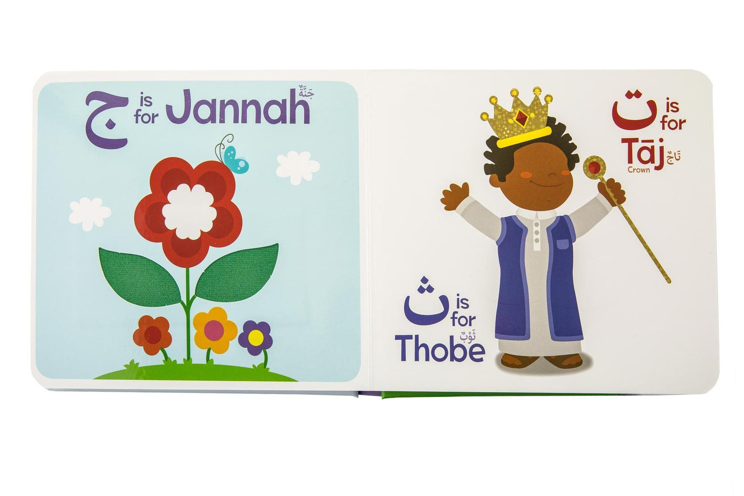 - Each letter has been paired with an everyday Islamic or Arabic word like 'Allah' and 'Zamzam' so your child can build an early association with key Muslim phrases.