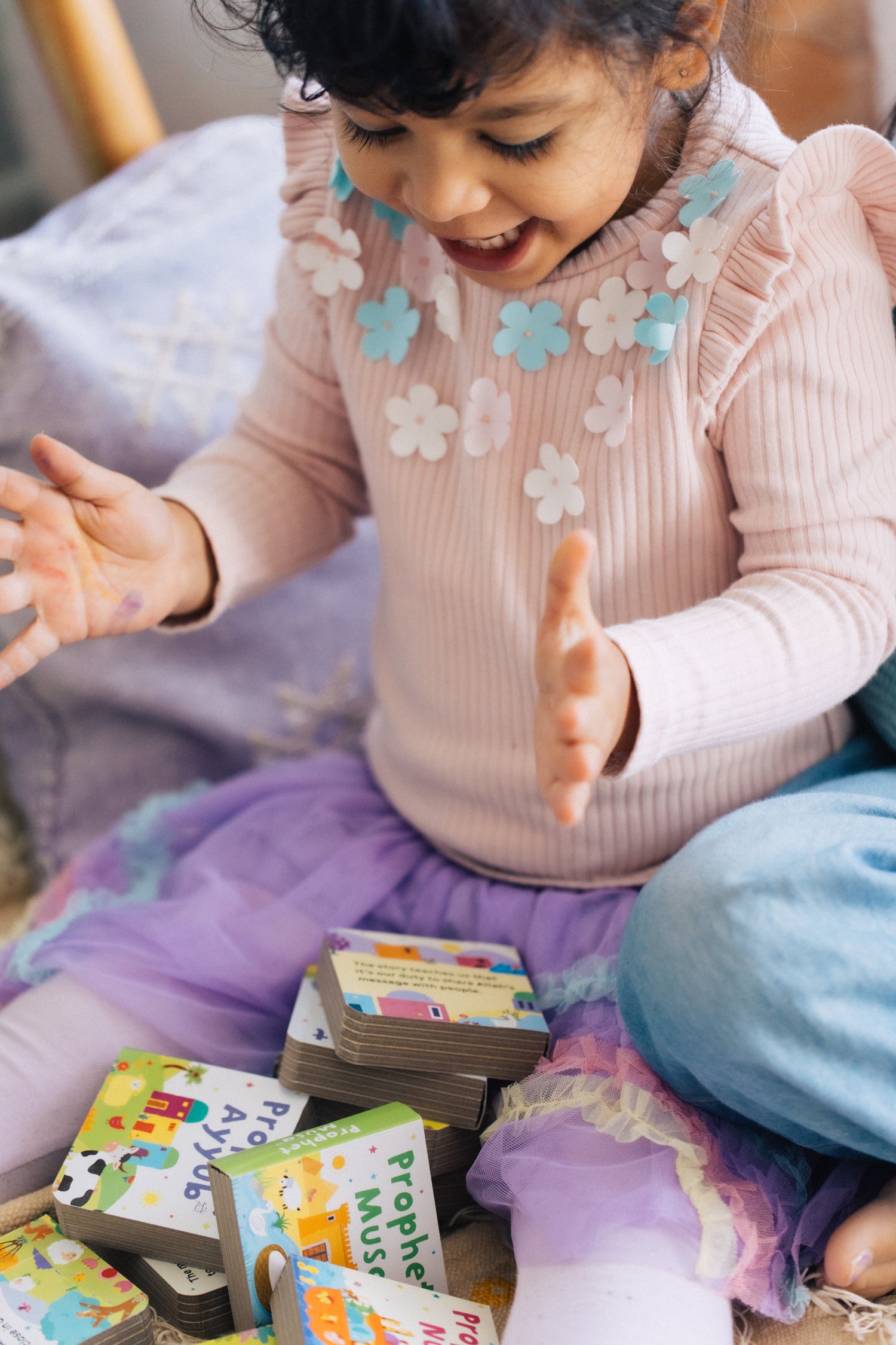 The box is a thing of beauty. It holds ten sturdy board books, perfect for little hands to hold and explore while you read engaging stories about the prophets.