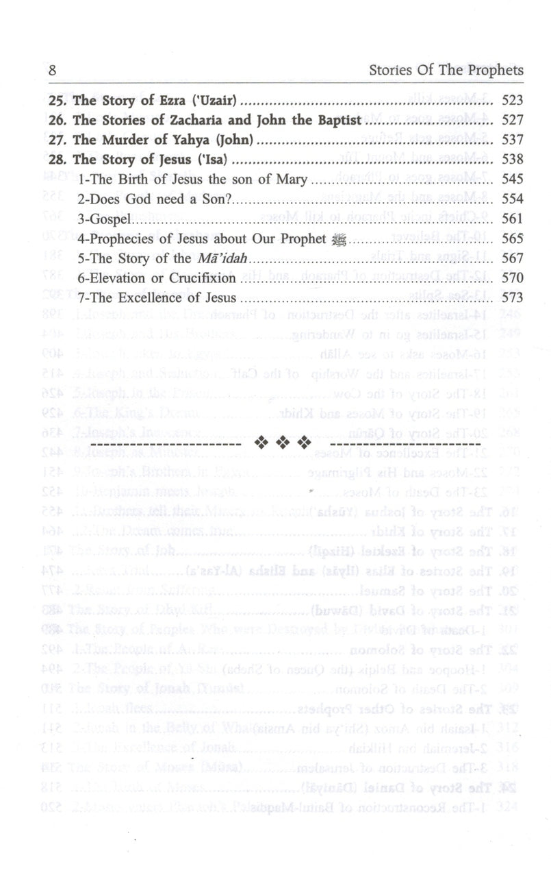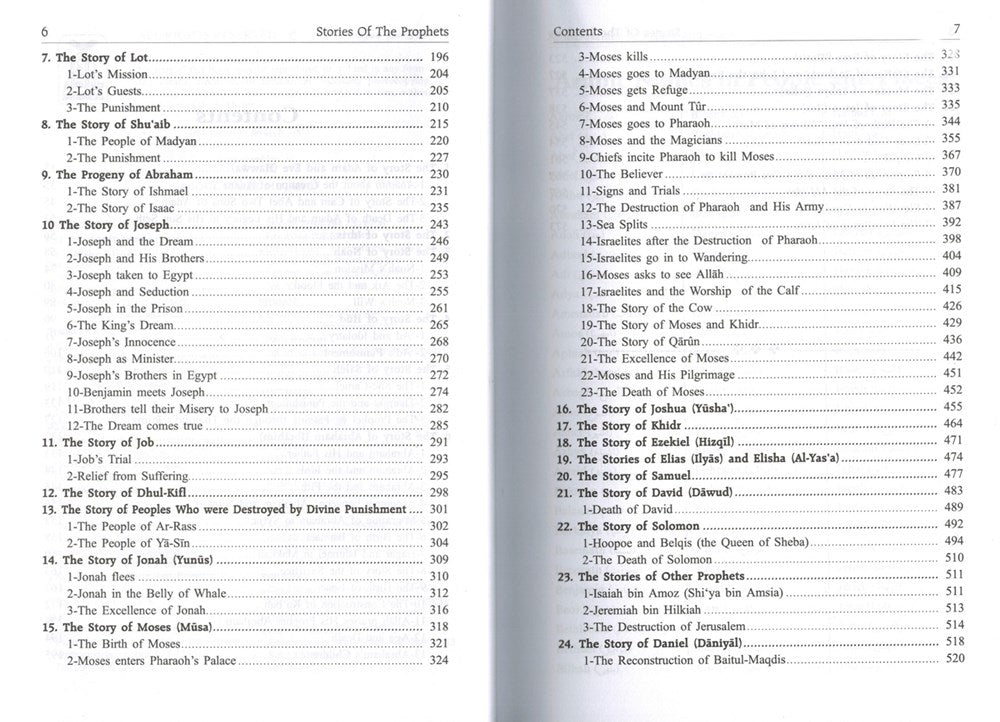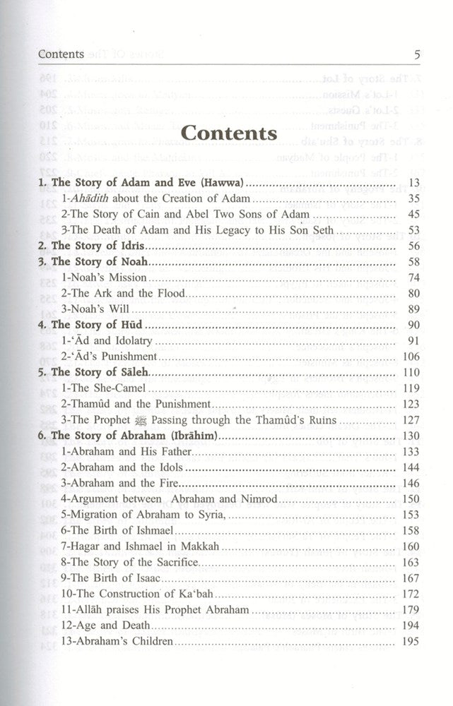 In this book, the stories of the prophets have been compiled from 'Al-Bidayah wan-Nihayah' (The Beginning and the End), which is a great work of the famous Muslim exegete and historian Ibn Kathir and has a prominent place in Islamic literature. The stories of the prophets and all the events in their lives have been supported by the Qur'anic Verses and the Sunnah (traditions) of the Prophet (S). Wherever it was necessary, other sources were also reported for the sake of historical accounts. Still, in such places, a comparative study was conducted to prove the authenticity of the sources. Ibn Kathir has reproduced the views and interpretations of all the great exegetes of the Qur'an of his time. The systemic narratives of the Stories of the Prophets have been written chronologically, rendering a historical style to the book.