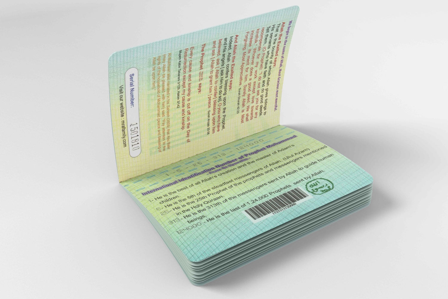 Presented in the design of a passport, this authenticated guide beautifully presents the identity of Muhammad Bin Abdullah Peace & Blessings be upon him.
