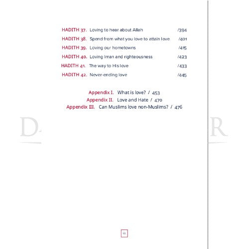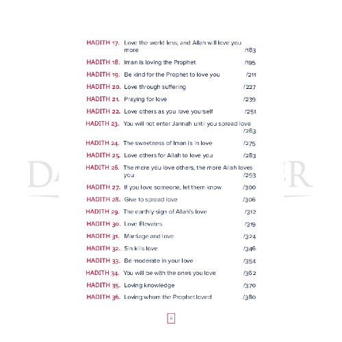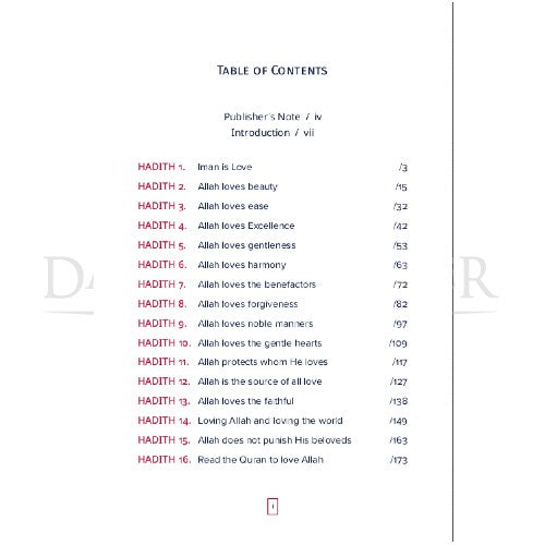 This book presents the Islamic message of love through forty hadiths on loving Allah, His Prophet, and His creation. It explains the indispensability of divine love in human existence, the centrality of love in Islam, and the means to attain and spread love on earth. It also clarifies common misunderstandings about love in Islam, affirming that Islam is the religion of love par excellence.