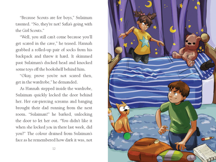 Sulaiman's Caving Calamity is the second in a series of stories about the adventures of a young Muslim boy. Sulaiman is looking forward to exploring inside deep, dark caves on his Scout trip...or is he? Once he is inside the cave, he has to overcome one of his biggest fears. A disaster happens and he has to turn to Allah for help. Sulaiman learns the importance of performing good deeds sincerely for the sake of Allah and to repent for any bad deeds he may have done.