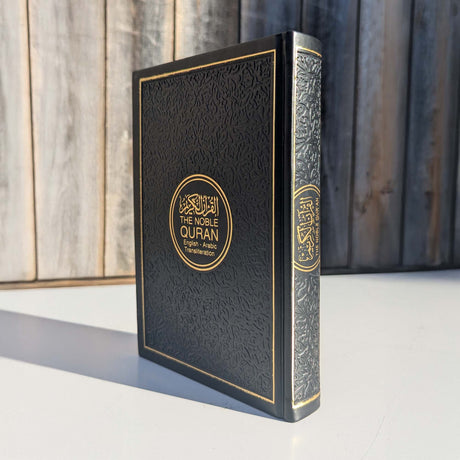 Noble Quran Text, Transliteration and Translation Leather Cover - Black