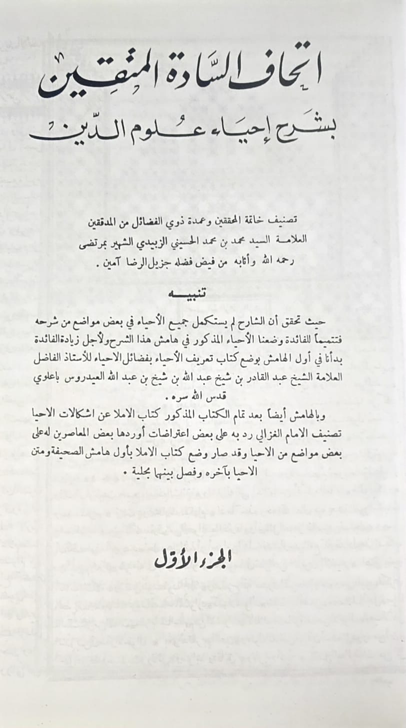 Title: اتحاف السادة المتقين بشرح احياء علوم الدين