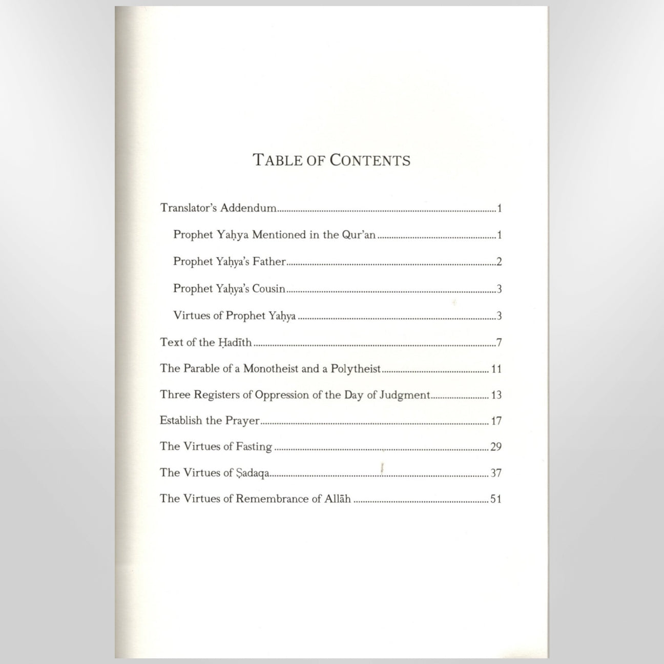Prophet Yahya, peace be upon him, gathered the Children of Israel in Jerusalem; until they filled the masjid to capacity, sitting upon its balconies. He addressed them, saying, "Indeed Allah has commanded me with five commandments to implement, and He instructed me to command you to implement them as well."