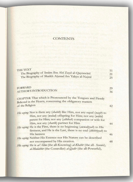 The Creed Of Ibn Abi Zayd Al-Qayrawani By Imaam Abu Muhammad Abdullah Ibn Abi Zayd Al Qayrawani The author was asked to write a short treatise on the fundamentals of belief and creed of Ahlus Sunnah Wal Jamaah. This work was written in response to that request, wherein the author explains the obligatory aspects of Islam, those that should be pronounced by the tongue, believed in the heart, acted upon the limbs and acts of Sunnah related to the foundations of faith. This detailed work covers many aspects of faith, jurisprudence and character. It commences with belief in Allah, His Names and Attributes and the applied principles in understanding them. It also discusses the Quran, seeing Allah, punishment of the grave and events that will occur therein, the Divine Decree, companions of Allah's messenger and other important aspects of faith. He calls to following the way of the Salaf and adhering to the knowledge and guidance they left for the community. Creed is not just mere code of belief but it has a practical role, which translates into qualities, characteristics and actions that every Muslim must adhere to and accompany. When writing this tract the author has kept the young and mature in mind, hence keeping the work very simple to read and understand - placing it ideally as an educational textbook. Knowing the creed of Ahlus Sunnah Wal Jamaah is compulsory for every Muslim, learning and memorising it is also an important aspect of this pristine faith. - Imam Ibn Abi Zayd Al-Qayrawani was a leading imam and an Islamic scholar from North Africa. He was an exegete and a jurist who was known as 'little Malik' because of his vast knowledge and expertise in the Maliki school of fiqh. He authored over thirty works on various Islamic disciplines. Imam al-Dhahabi said of him, "He, may Allah have mercy on him, was upon the way of the pious predecessors concerning the fundamentals of Islam". He was very pious, deeply religious and steadfast in his adherence to the Sunnah.