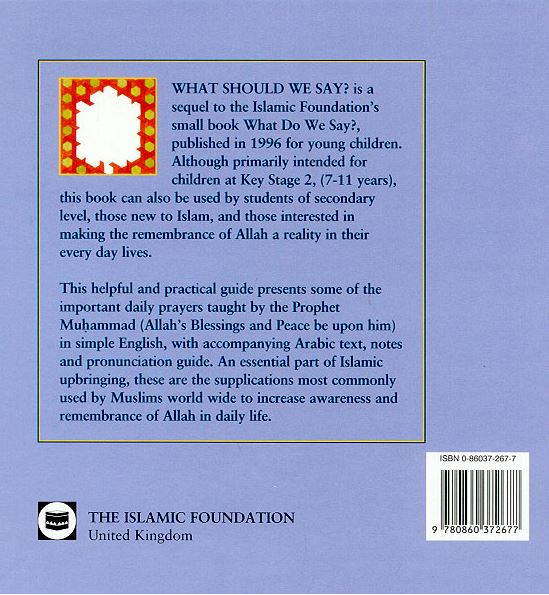 What Should We Say? is a selection of prayers to be used daily by Muslims. These short prayers have been compiled from the Qur'an and the example of the Prophet Muhammad, and illustrate in a vivid and concrete manner the Islamic principle that encourages believers to cultivate consciousness of God in all they do throughout the day.