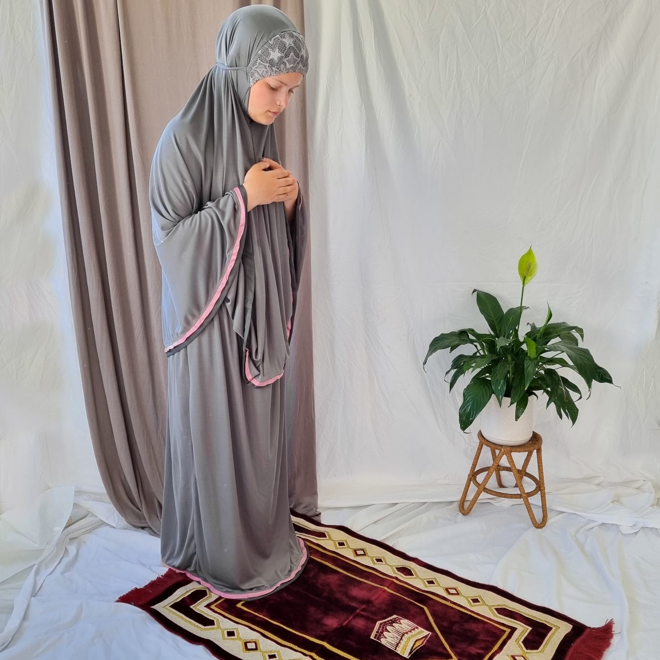 Girls 2 Piece Prayer Outfit Plain - Grey