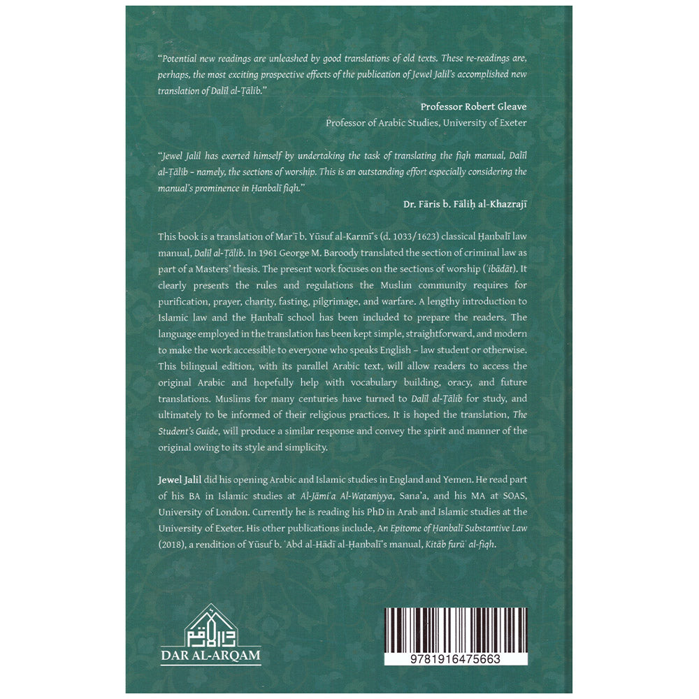This book is a translation of Mar'i b. Yusuf al-Karmi’s (d. 1033/1623) classical Ḥanbali law manual, Dalīl al-Ṭālib. In 1961 George M. Baroody translated the section of criminal law as part of a Masters’ thesis. The present work focuses on the sections of worship (ʿibādāt).