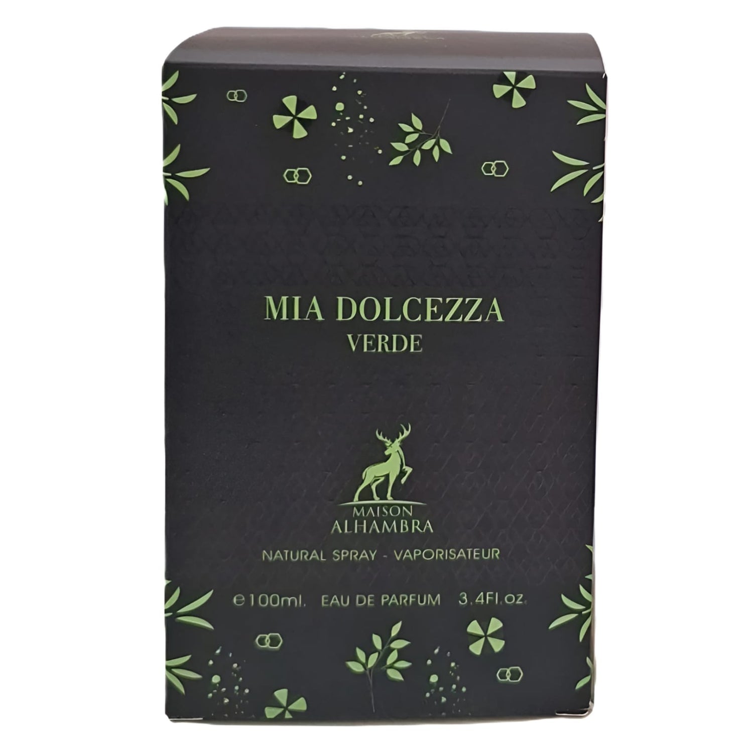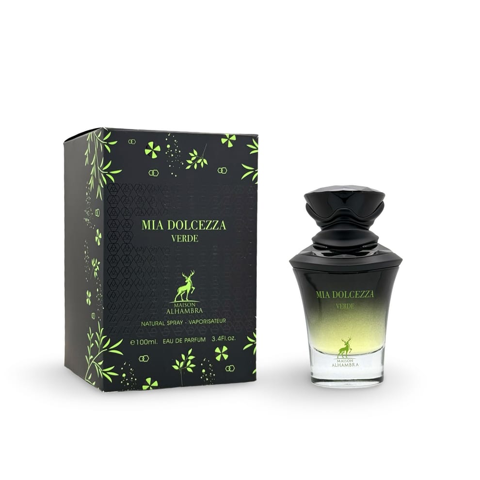 Lattafa Maison Alhambra Mia Dolcezza Verde for Women Eau de Parfum is a bright and elegant fragrance that blends citrus sparkle with floral sweetness and creamy warmth. It opens with a zesty mix of lemon, mandarin and pink pepper, creating a lively and refreshing introduction. The heart reveals a charming bouquet of jasmine, lily of the valley, sugar and rose, adding delicate floral notes with a soft gourmand touch. In the base, amber, vanilla, cashmere, cedarwood and musk create a smooth and sensual finish. Mia Dolcezza Verde is a radiant and feminine scent for women who embrace grace, joy and effortless beauty.