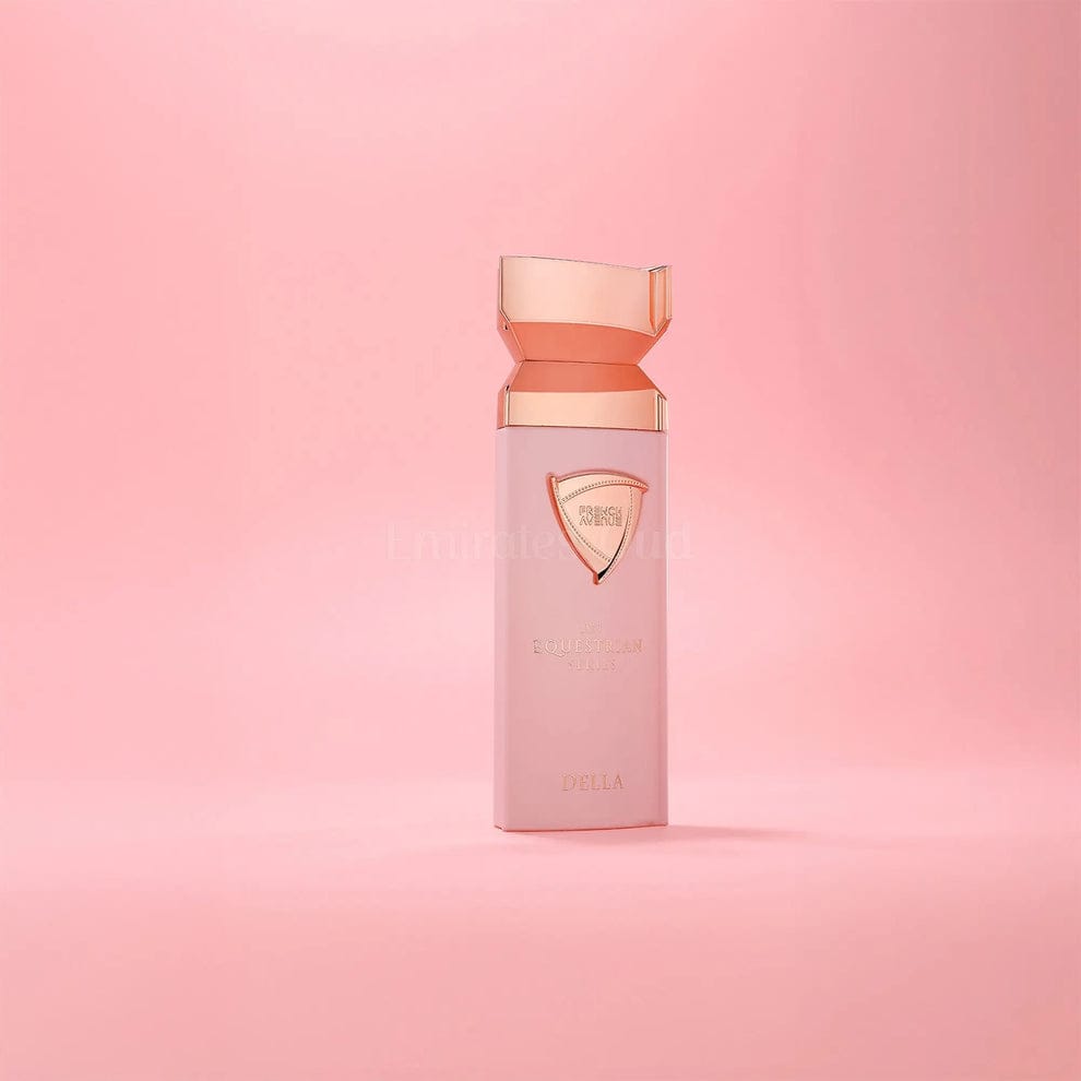 Della Equestrian Series 100ml parfum is a graceful floral fragrance that embodies femininity and charm. It starts with a refreshing mix of bergamot, rhubarb, and lychee, creating a fruity yet slightly tart opening. The heart blossoms with peony, lily of the valley, and rose, adding a soft and romantic floral touch. A warm base of vanilla, musk, and cashmere wood gives the fragrance depth and elegance, making it a timeless choice for any occasion.