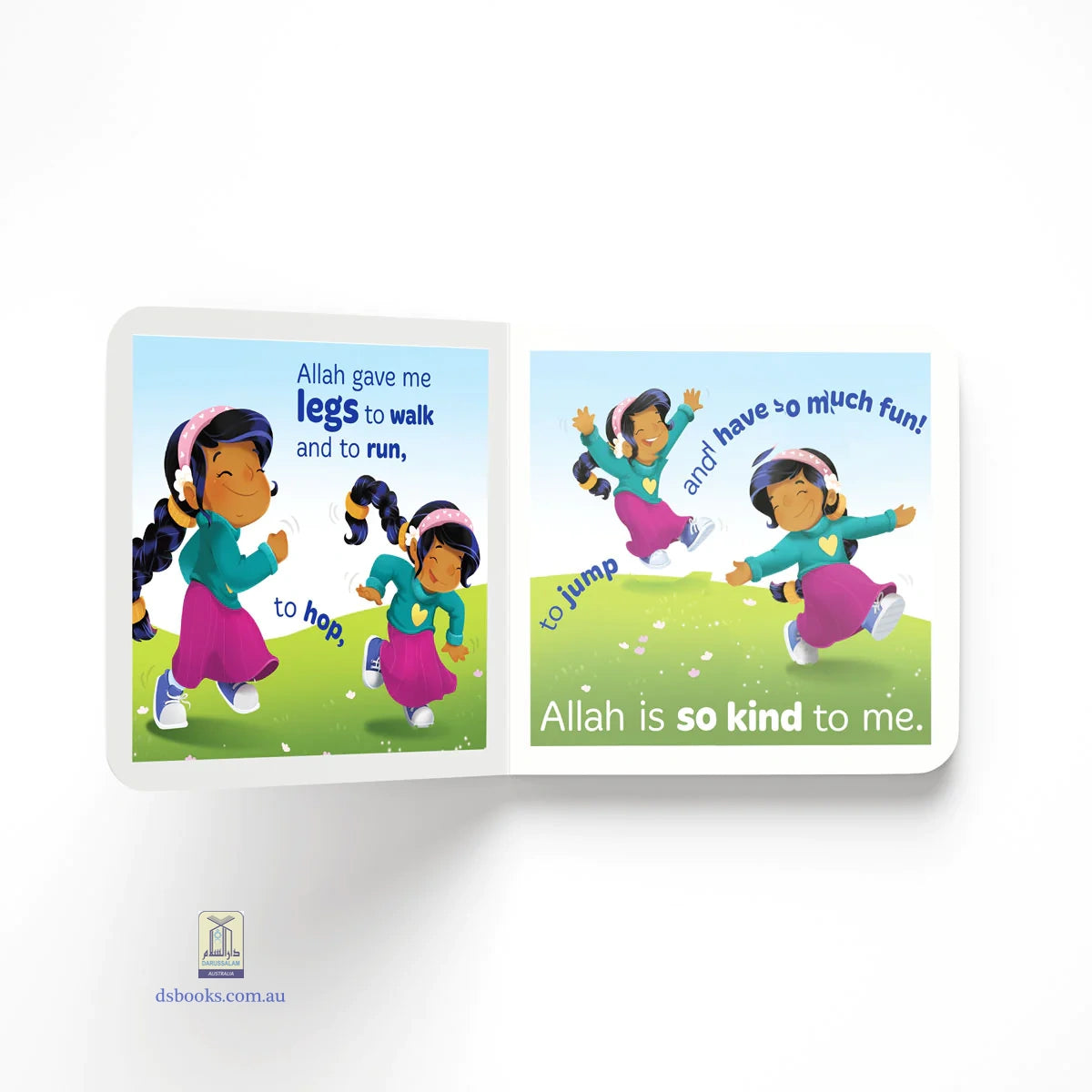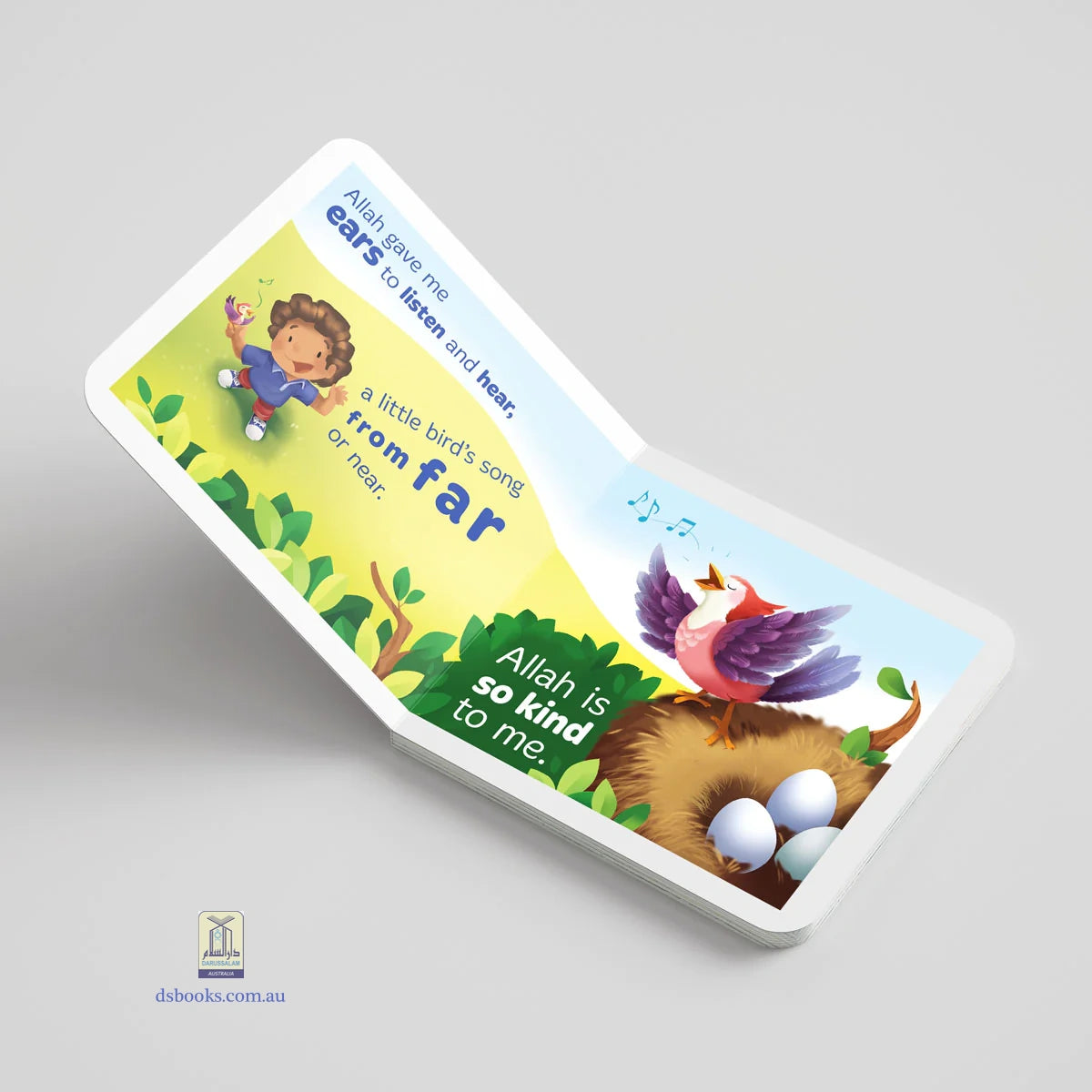 Captivating illustrations featuring boys and girls from different cultures all enjoying Allah’s kindness.