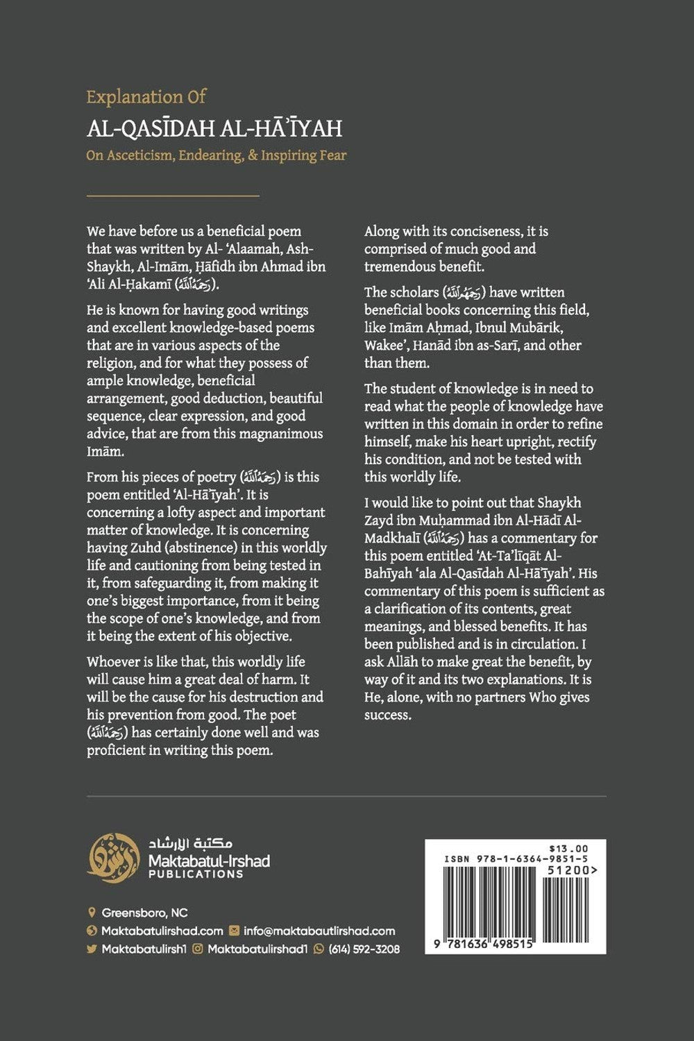 A beneficial poem that was written by Al- ‘Allaamah, Ash-Shaykh, Al-Imam, Ḥafidh ibn Ahmad ibn ‘Ali Al- Ḥakamī (May Allah have mercy upon him). He is known for his good writing skills and excellent knowledge-based poems on various aspects of the religion. For what they possess of ample knowledge, beneficial arrangement, reasonable deduction, beautiful sequence, clear expression, and sound advice, that is from this magnanimous Imām. From his pieces of poetry (May Allah have mercy upon him) is this poem entitled ‘Al-Haīyah.’ It concerns a lofty aspect and an essential matter of knowledge. It is regarding having Zuhd (abstinence) in this worldly life, cautioning from being tested in it. This poetry contains safeguarding it, from making it one’s most significant importance, from it being the scope of one’s knowledge, and from it is the extent of his objective. Whoever is like that, this worldly life will cause him great harm. It will cause his destruction and deprive him of any good.