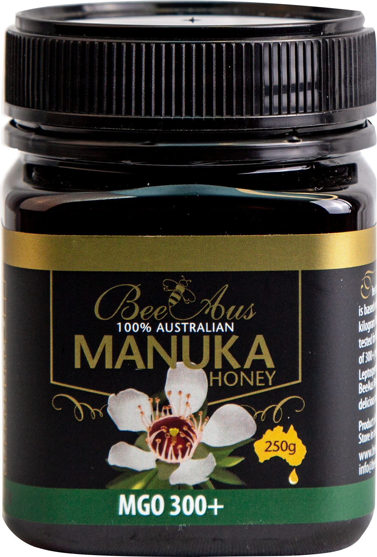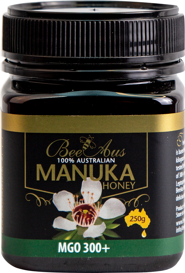 Taste the difference of our Manuka Honey MGO 300+. Created by bees collecting nectar and pollen from native Australian flora, BeeAus Manuka Honey MGO 300+ is natural and 100% Australian honey, sourced from Australian native forests.