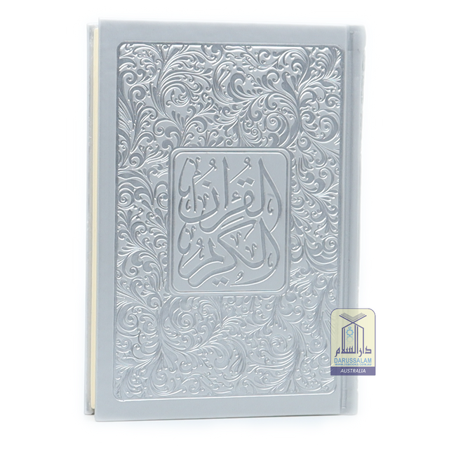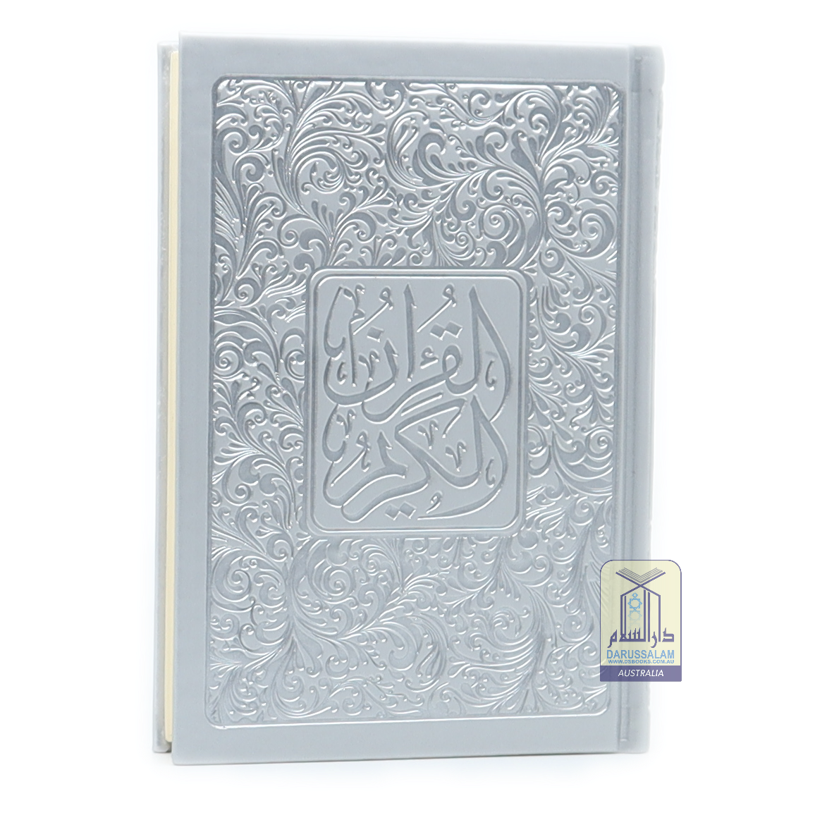 Quran 14.5x20.5cm A5, Silver - Cream pages, Arabic Text Uthmani Script Cover Design