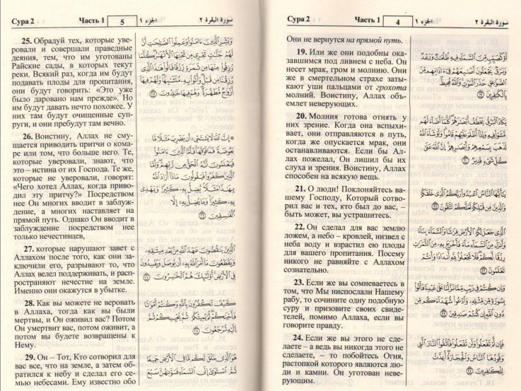 This Mushaf features the Russian translation of the Quran with corresponding Arabic verse in Uthmani script side by side.