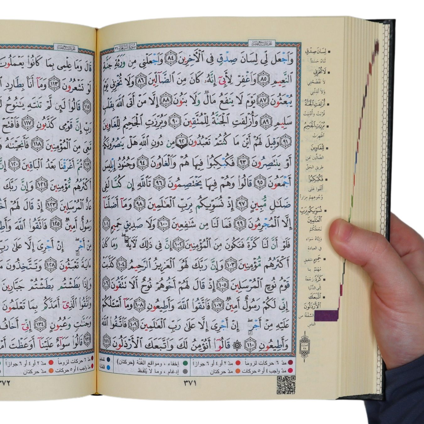 This is a complete Color Coded Tajweed Quran (from Surah Al-Fatiha to Suran Al-Nas); it comes with a nice, beautifully designed hard and heavy-duty cover, very strong binding, perfect finishing.