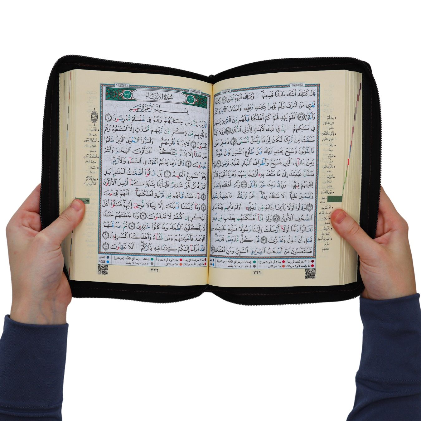This complete Color Coded Tajweed Quran comes with a nice protective leather zipper case.