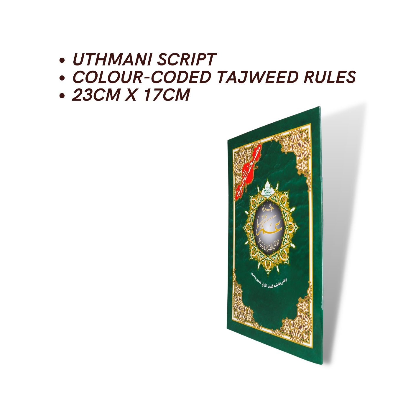 This complete Colour Coded Tajweed Quran comes with a nice and beautiful hard cover. Interpretation of selected words is placed on the margin of each page.