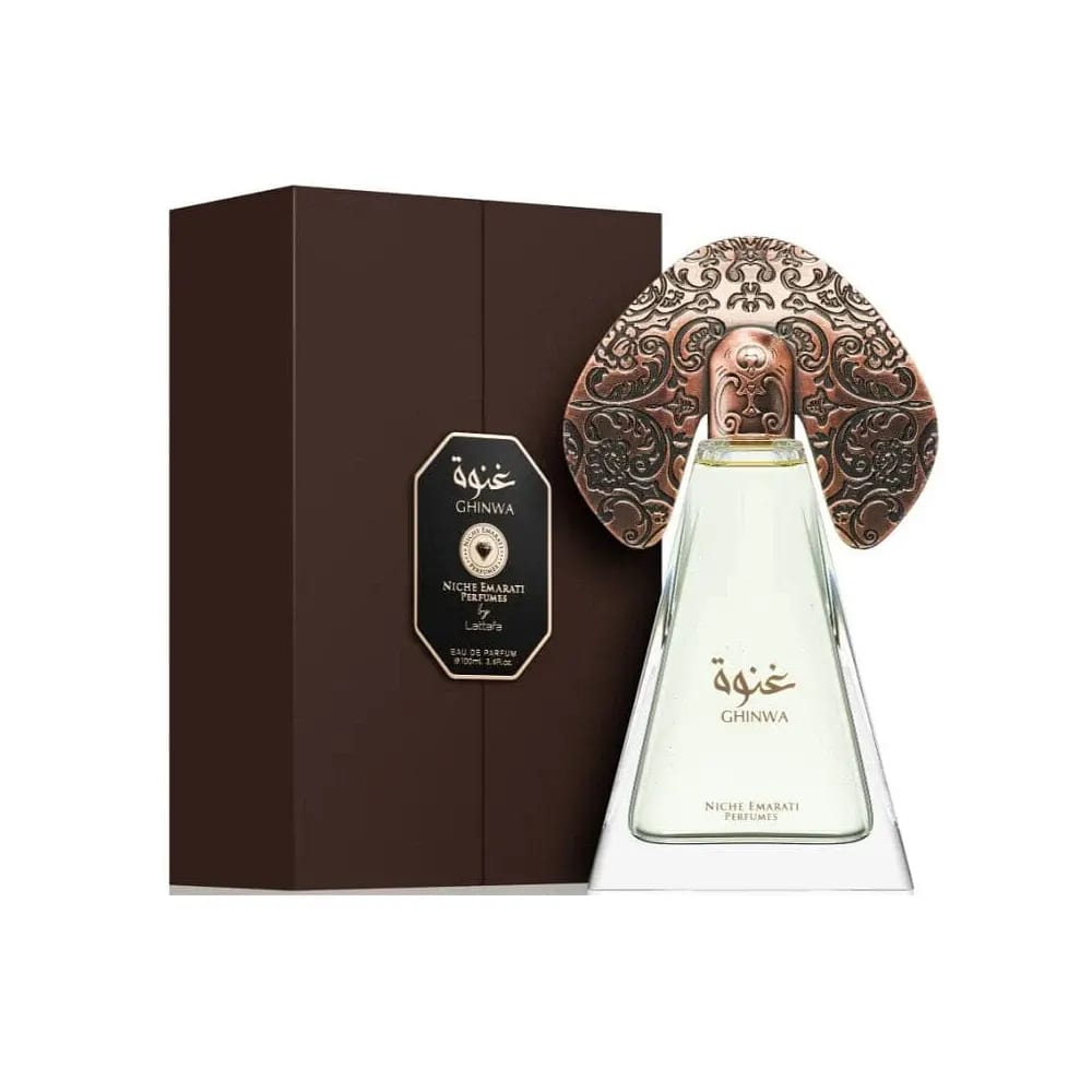 Ghinwa Perfume / Eau de Parfum 100ml by Niche Emarati Perfumes (Lattafa) is a captivating fragrance that weaves together fruity, floral, and woody notes to create a harmonious and enchanting scent. Its complexity and longevity make it a great choice for those who seek a fragrance that lingers throughout the day, leaving a trail of elegance and allure.