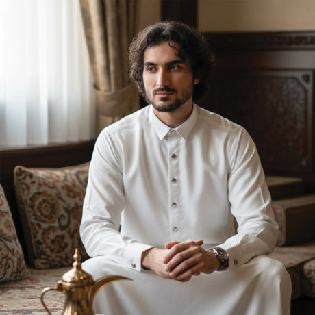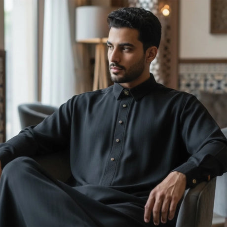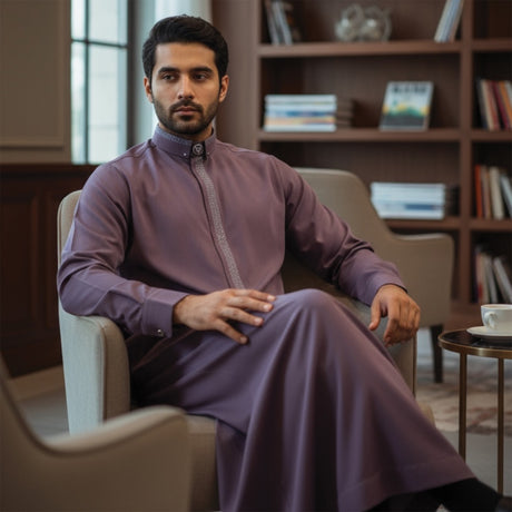 An abaya is a long, flowing garment worn by Muslim men for modesty, made from lightweight, breathable fabric. Our collection features a variety of colours, styles, and designs, including embroidered and beaded options, with Daffa and Ikaf brands known for their comfort and quality.