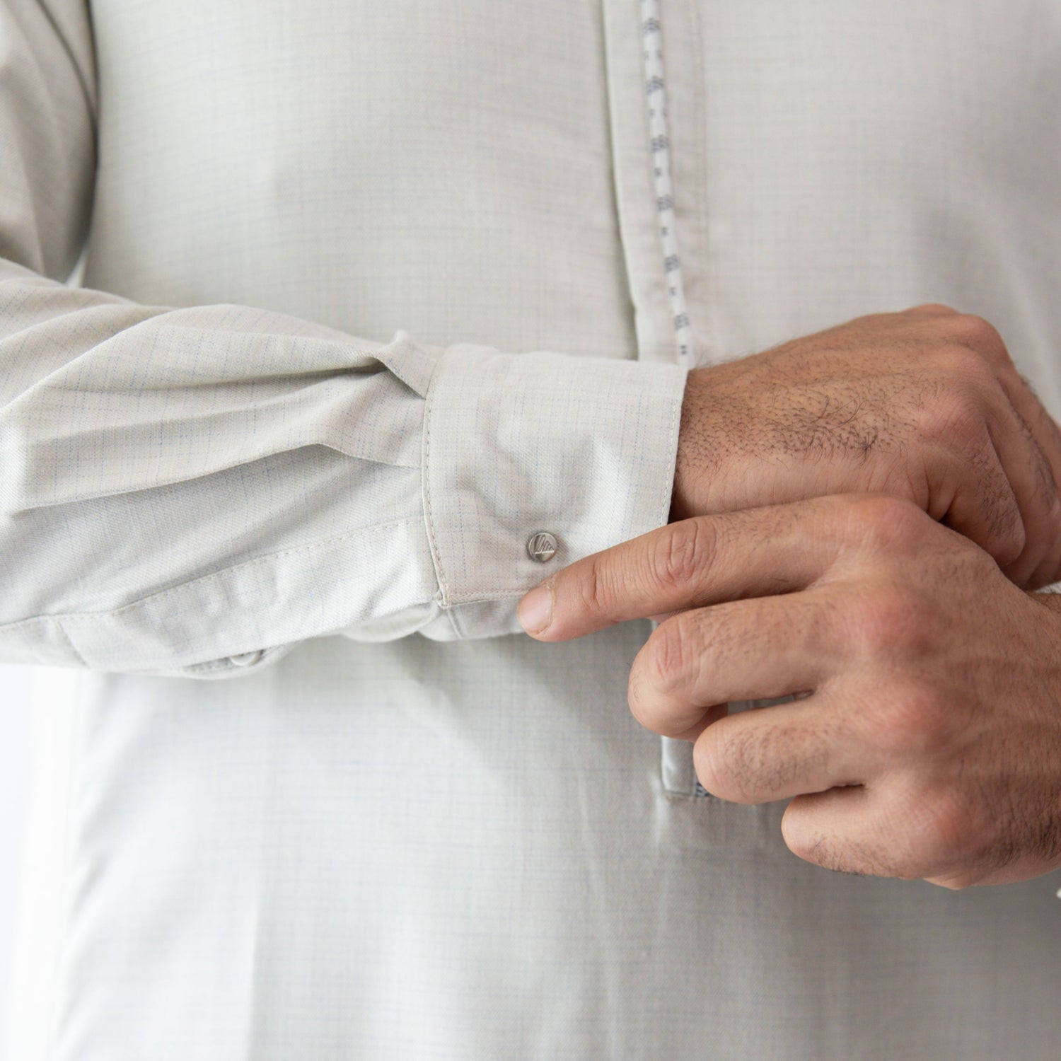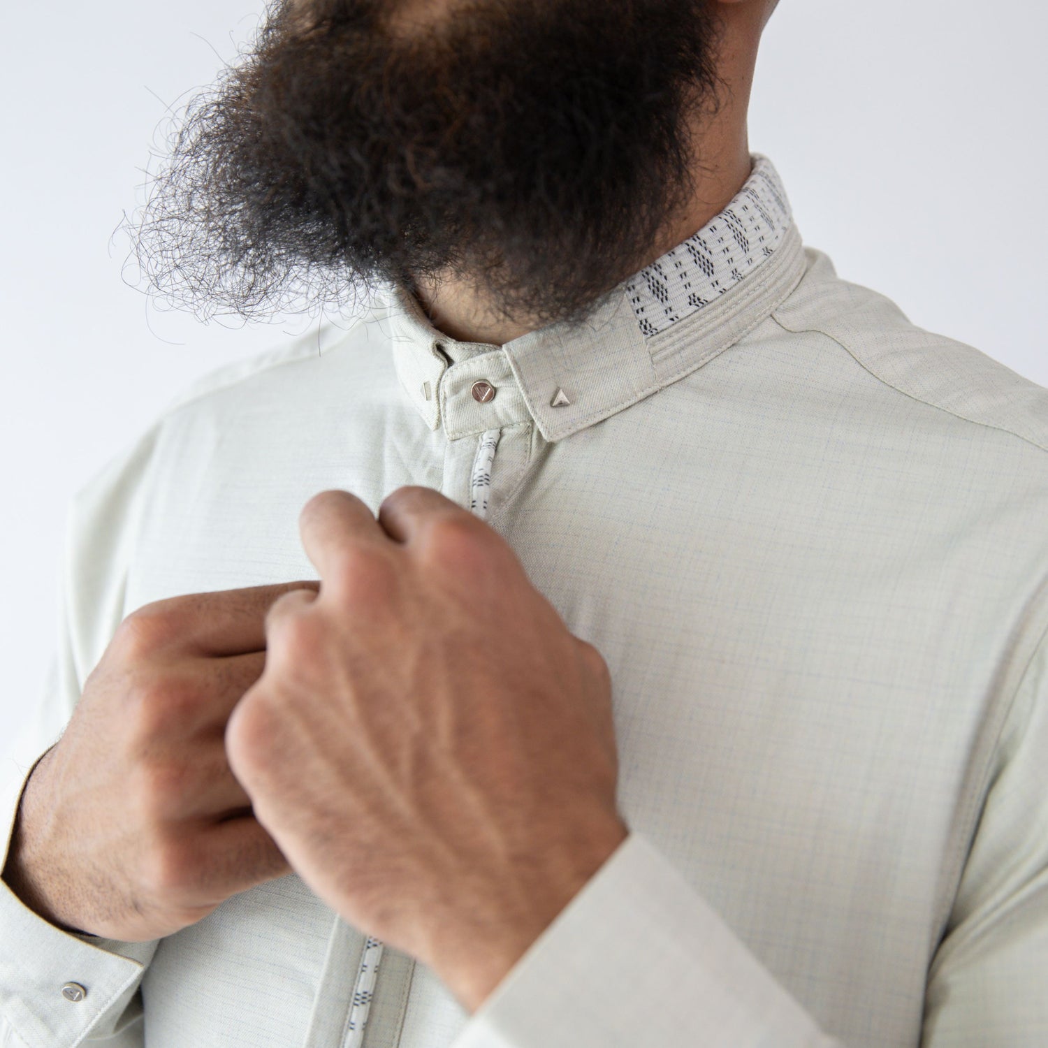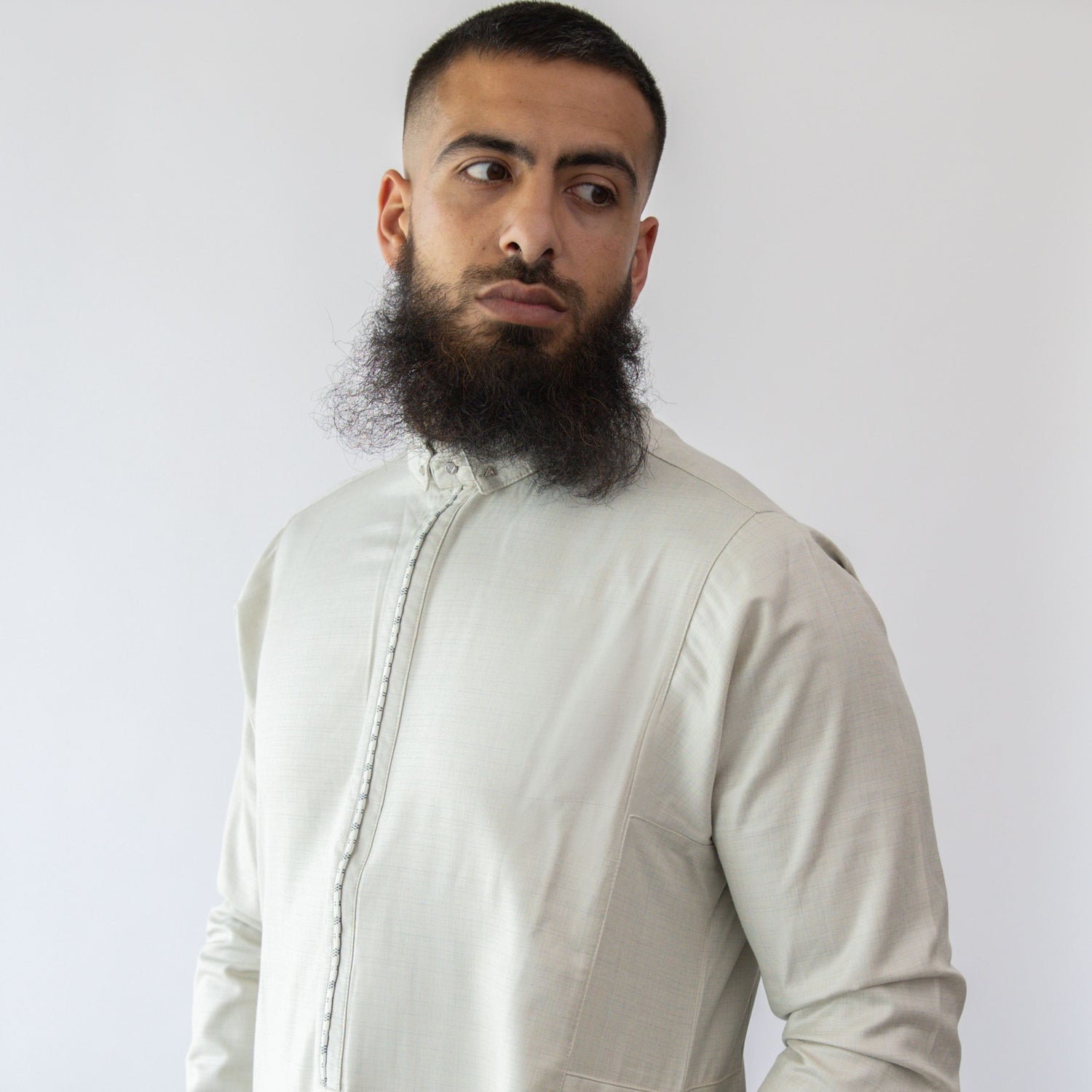 Introducing the AAR25329 — a sleek and modern Arabian garment in a sophisticated light grey hue. This thobe’s soft, neutral tone offers a contemporary look that exudes subtle elegance, making it a versatile choice for various occasions.
