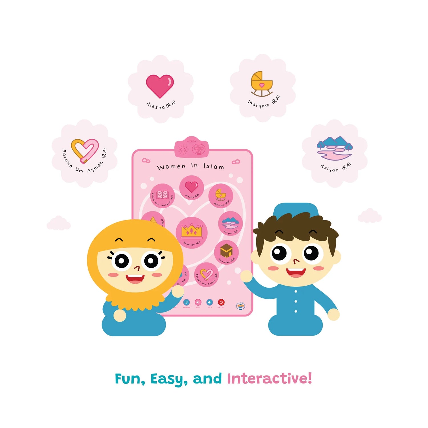 The Audio Mat & Wall Art make it easy. Touch, listen, repeat, and remember. A simple way for your child to connect with the lives and lessons of the Remarkable Women in Islamic history every day.