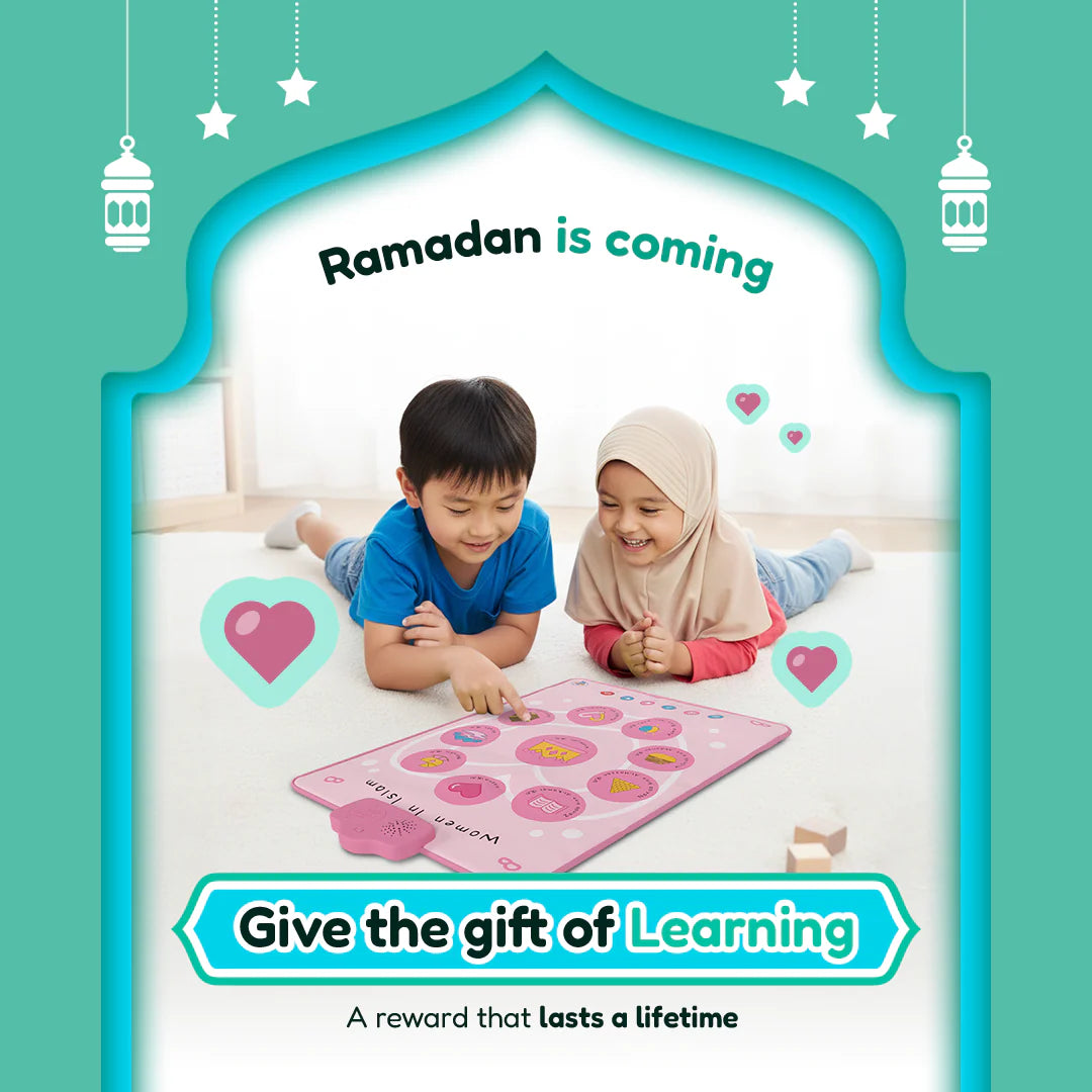 This interactive audio mat & wall art helps your child discover the women who embodied faith, courage, and compassion. Each name comes alive through voice, story, and light. Designed for ages 3+, it nurtures love for Islamic heritage and the inspiring women who carried the message of Islam with strength and grace. More than décor, it’s a daily reminder of faith, empowerment, and barakah for the whole family.