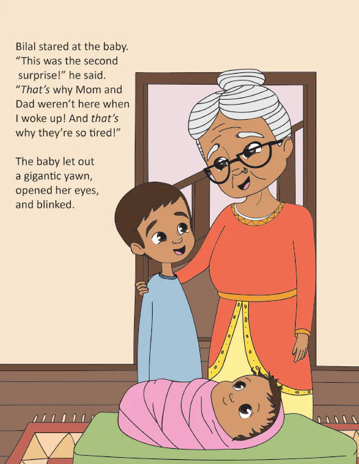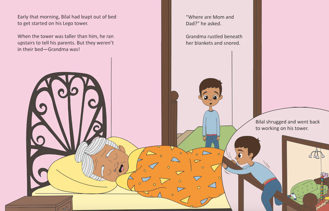 When Bilal wakes up to find his parents missing and Grandma sleeping in their bed, he knows it might not be an ordinary day. But when Dad walks into the house in a tired daze, Bilal is confused!